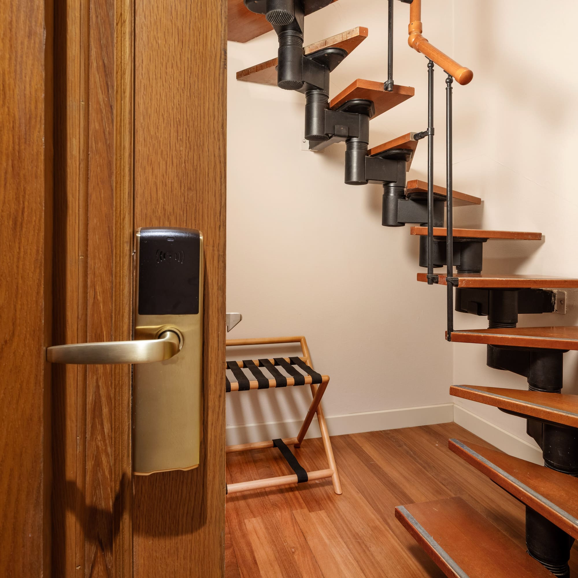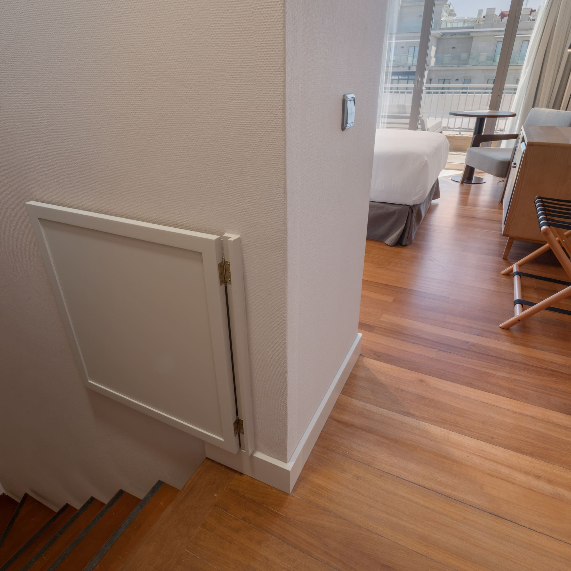 An ideal duplex room for a family getaway break. It provides a bedroom, bathroom and private terrace on the upper floor and a lounge with a double bed and another bathroom on the ground floor. It also includes a package of children's amenities and locks.