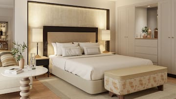 انغمس في جناحٍ استثنائي بمساحة تزيد عن 400 متر مربع، يتجسد فيه جوهر البحر الأبيض المتوسط في فندق خمس نجوم في إستيبونا. يجتمع ضوء النهار ونسيم البحر العليل والخصوصية ليخلقا إقامة أصيلة لا تُنسى.