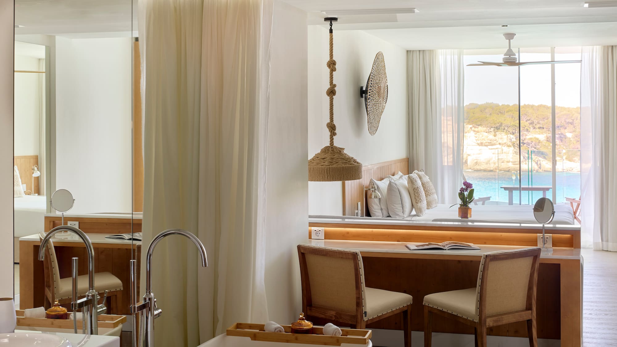 ستقع في عشق البحر الفيروزي أثناء الاستمتاع بإطلالات Cala Galdana من التراس الخاص بك. انظر إلى الداخل واكتشف غرفة كبيرة وحديثة وأنيقة ومريحة. تجربة كاملة.