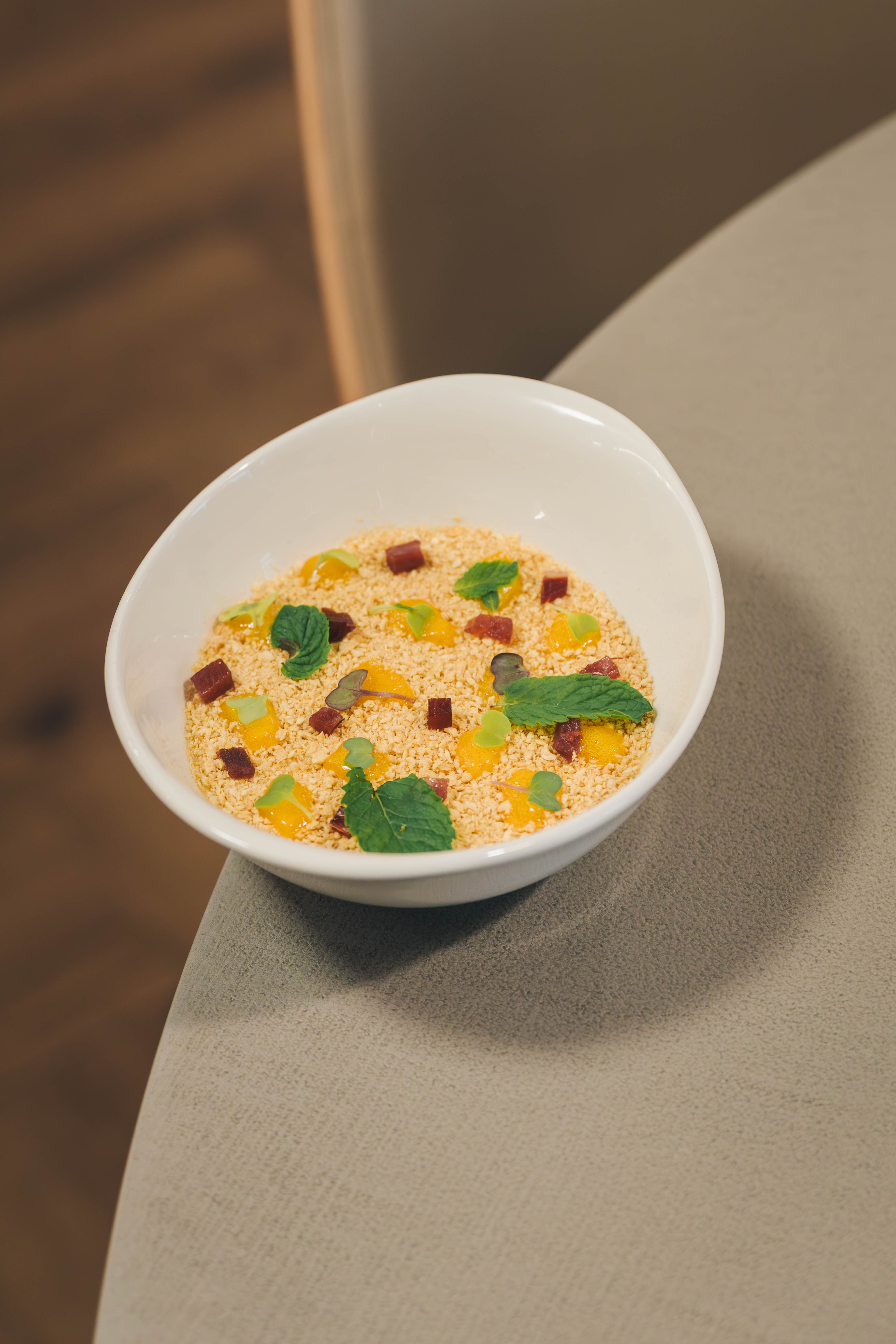 Periko Ortega's culinary journey arrives at Meliá Granada, blending technical rigour, artistic instinct, and a special connection with the surroundings. His cuisine is characterised by the use of innovative culinary techniques, the 'cuisine of memories', and a firm commitment to the excellent products of our land. A cuisine born in the South and written in the present tense, with contemporary technique, recognisable flavours, and a touch of audacity.