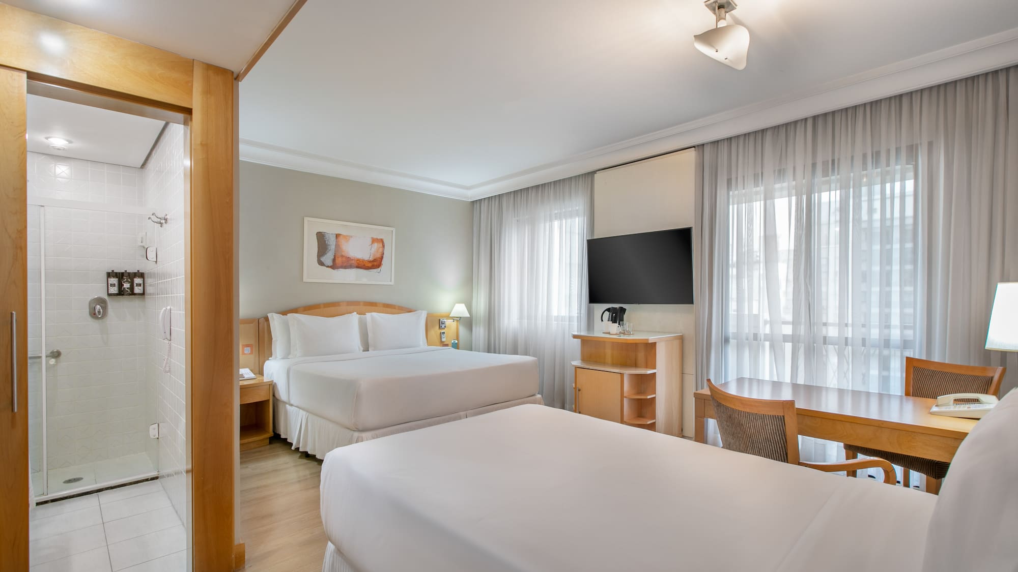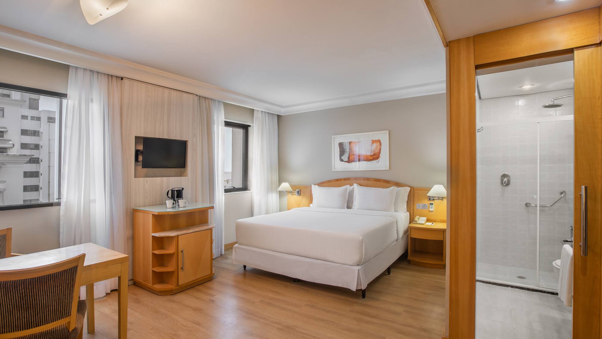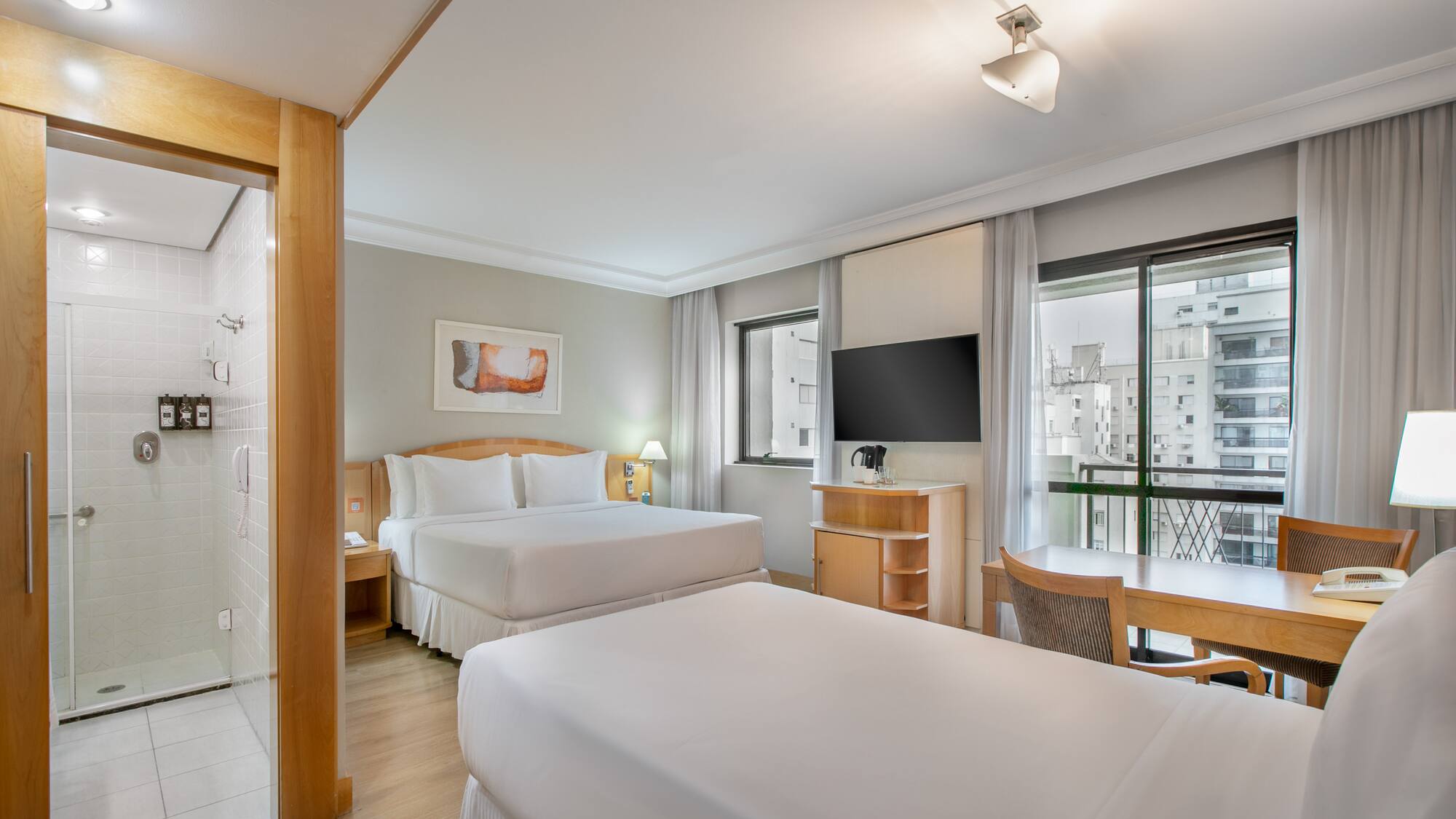 Chcete se probouzet s Higienópolis u vašich nohou? Zde si užijete svůdný výhled z vlastního balkonu, postele, křesla nebo psacího stolu. K dispozici máte minibar, župan, pantofle a plně vybavenou koupelnu – vše pro vaše pohodlí.