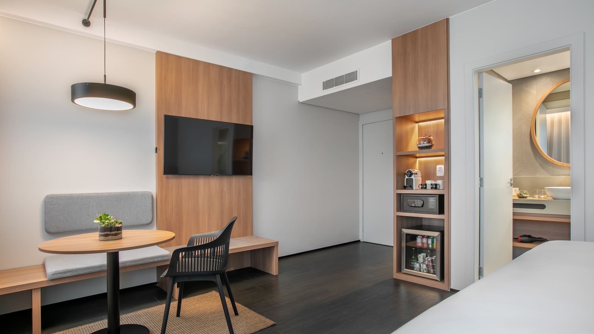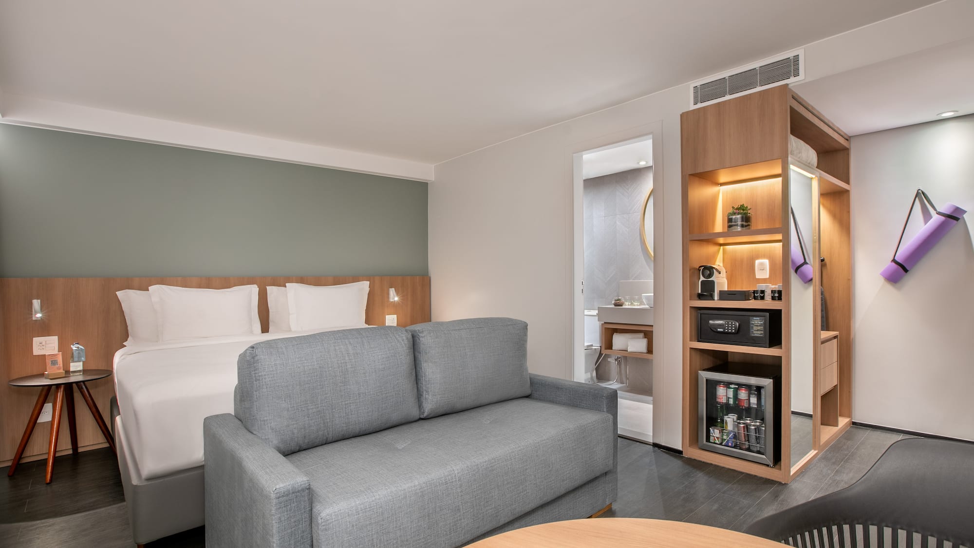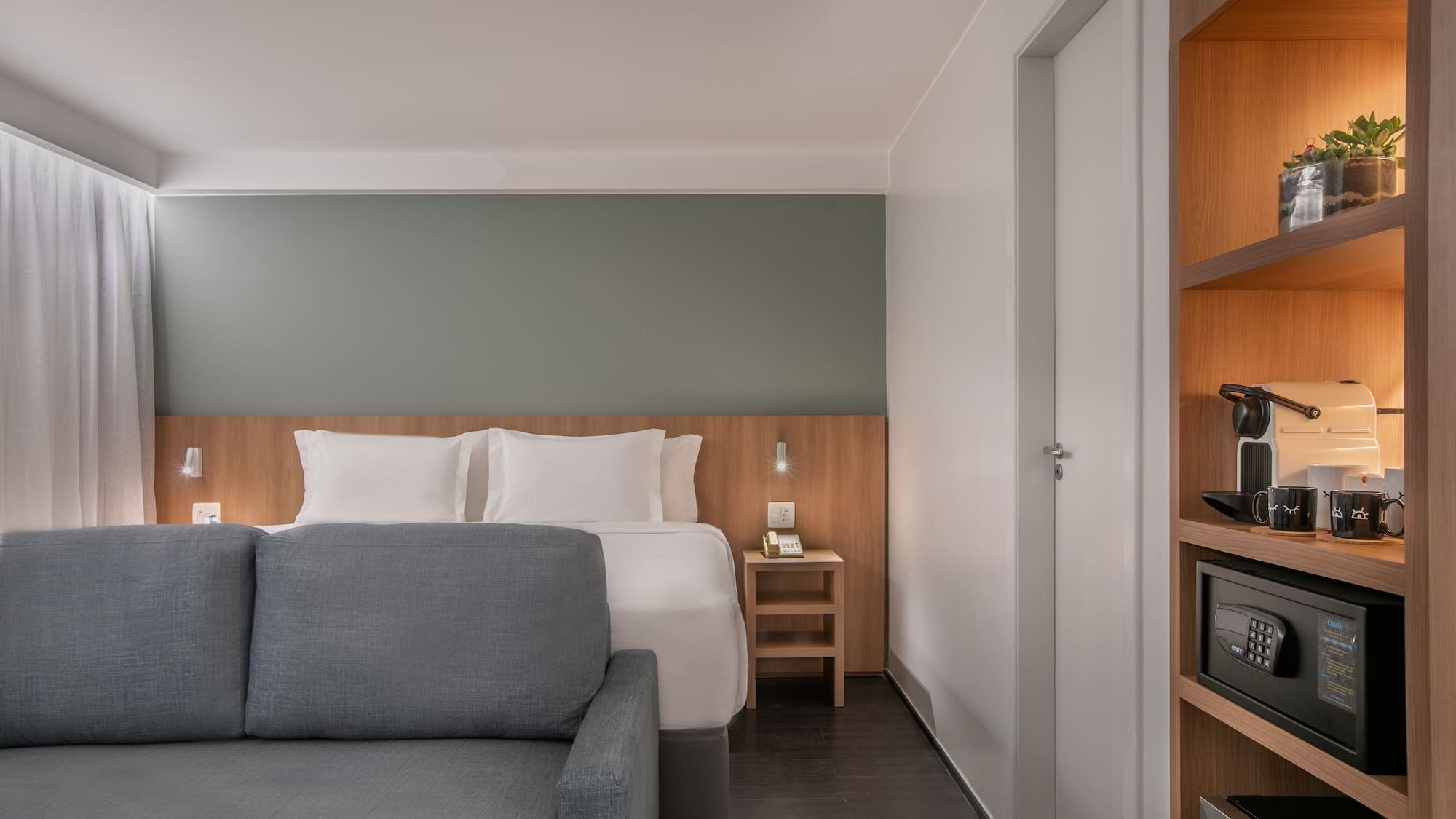 Kdo řekl, že pohodlí a styl nejdou dohromady? U nás se o tebe postaráme jako doma, ale s těmi rozmazlujícími detaily, které umí nabídnout jen hotel jako INNSiDE São Paulo Higienópolis. Nespresso připraveno, polštář podle tvého gusta, měkké pantofle, župan čeká… a ano, uvítací minibar. Odpočiň si, o zbytek se postaráme my.