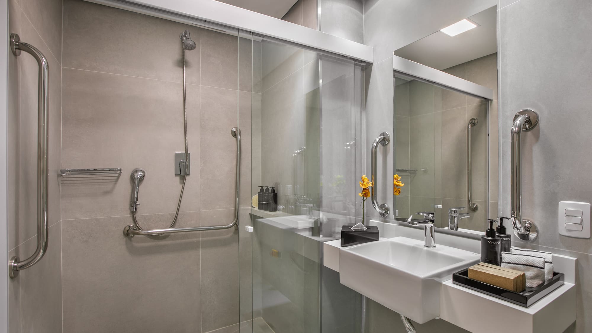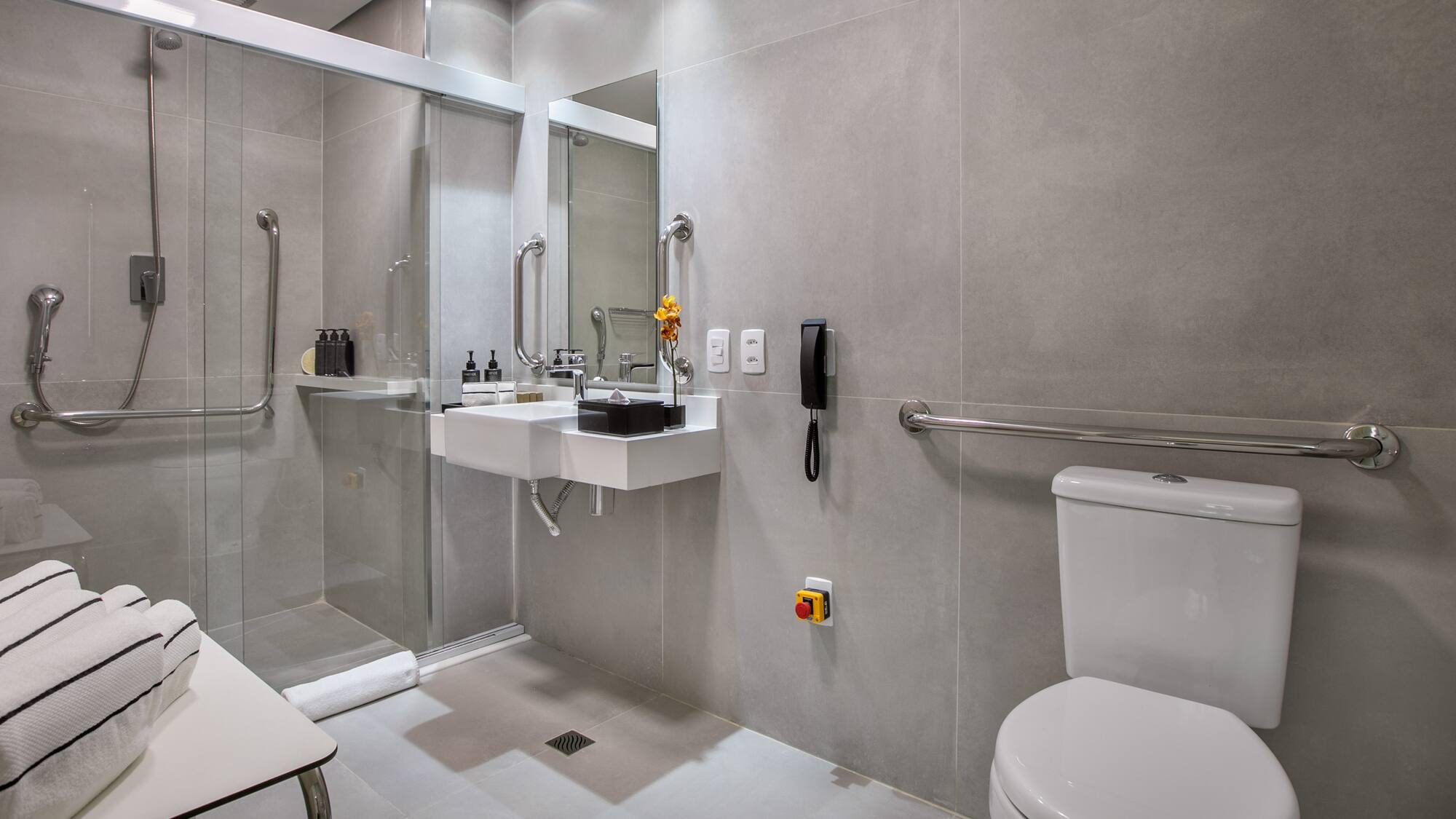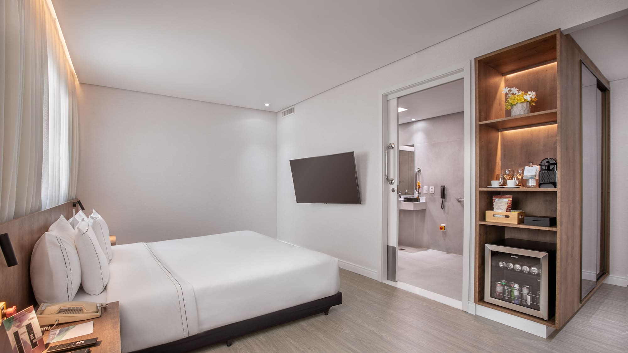 Prostorný a plně přístupný pokoj, který vám zajistí příjemný pobyt v São Paulu. Moderně zařízený pokoj s výhledem na město, manželskou postelí, klimatizací a prostornou koupelnou se sprchovým koutem.
