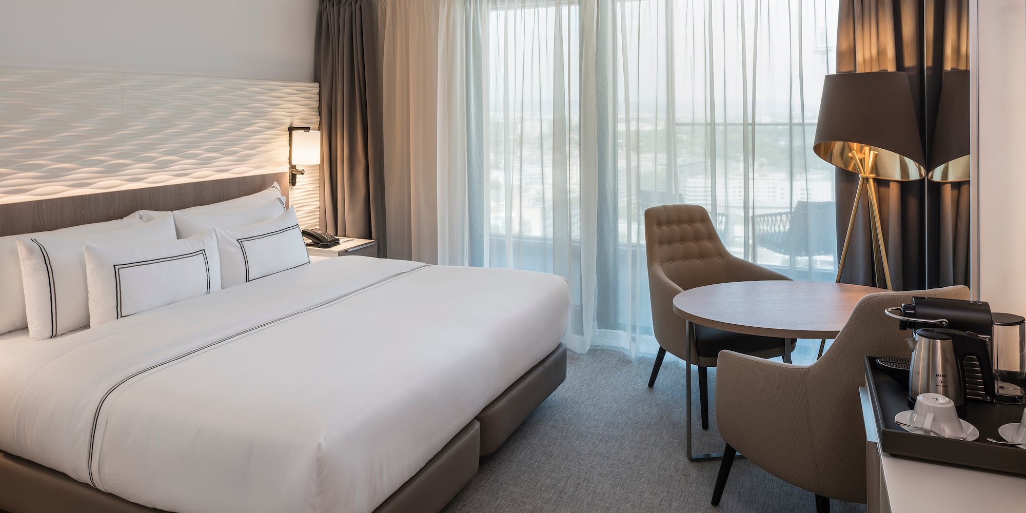 Sleep in a room designed to offer the most comfortable and relaxing experience. Enjoy plenty of natural light and panoramic views from your fantastic king-size bed and fully integrated bathroom.