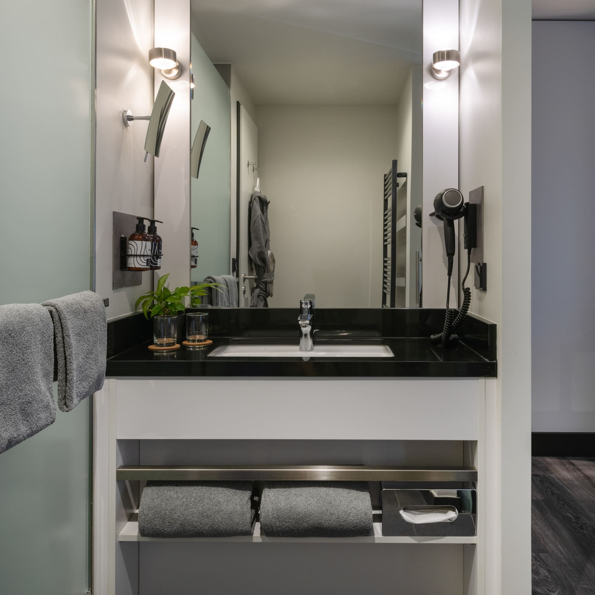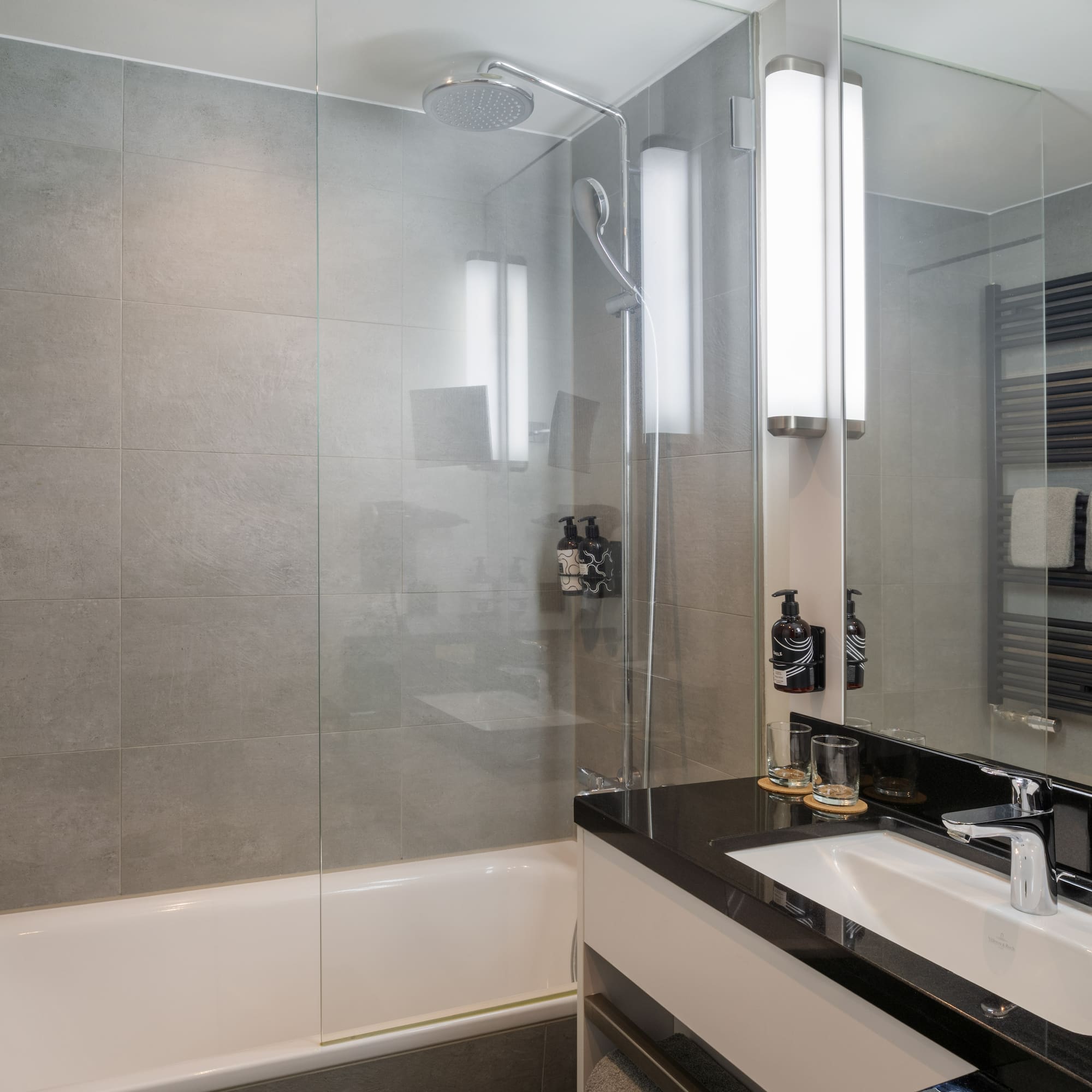 Spojte práci a volný čas v moderním a velmi pohodlném pokoji s manželskou postelí velikosti king-size nebo dvěma samostatnými lůžky, koupelnou s toaletními potřebami pro lepší péči o vaši pokožku a dešťovou sprchou pro příjemnou relaxaci.