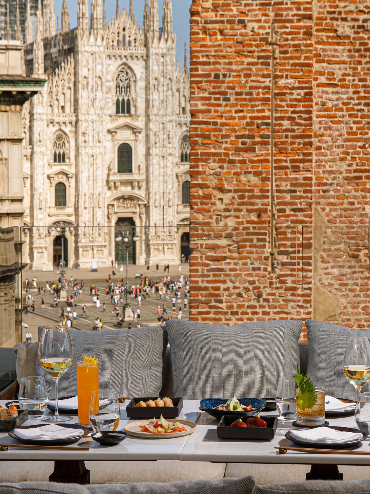 Naše panoramatická střecha ve 4. patře ikonického Palazzo Cordusio nabízí úchvatný výhled na Duomo di Milano, svěží vyvýšené místo v srdci města. Je obklopený zelení a je ideálním místem pro vytříbený kulinářský zážitek pod širým nebem nebo stylový večer pod hvězdami.
