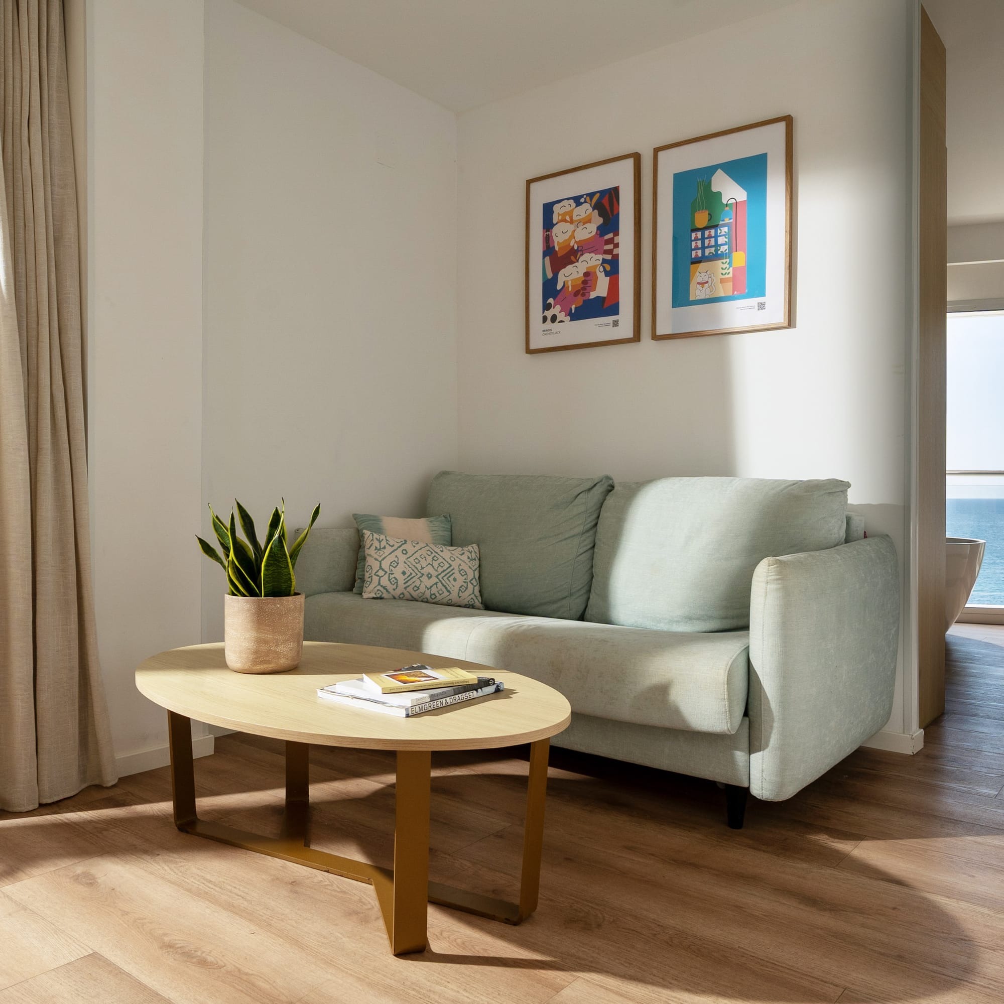 Pokud patříte k lidem, kteří milují pobyt u moře, tento loft je ideálním útočištěm. Dvě terasy s výhledem na Středozemní moře, ložnice s vanou vedle postele a okna a prostorný obývací pokoj s pohovkou. Neuvěřitelné, že ano?