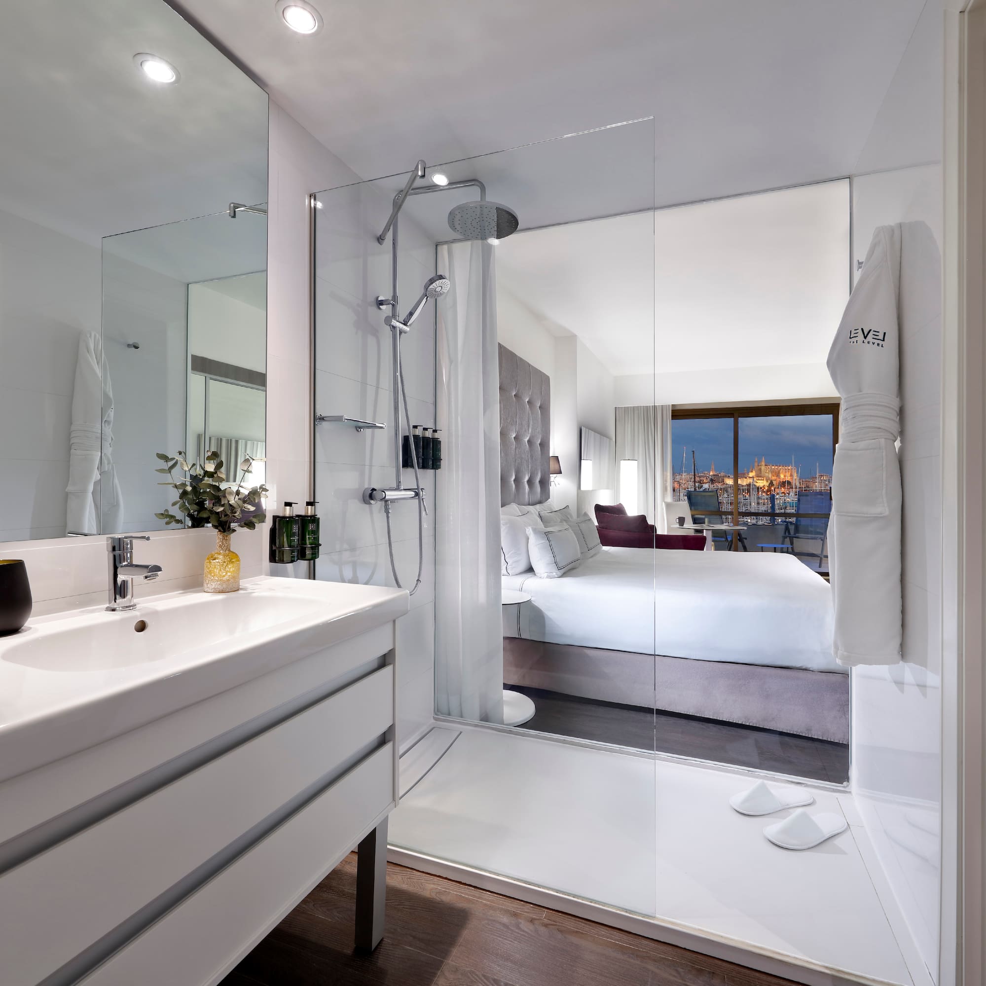 Pokoj snů naplněný tou nejčistší středomořskou esencí. S báječnou plně zařízenou terasou s výhledem na přístav Palma, přímým přístupem do bazénu a exkluzivními službami The Level.
