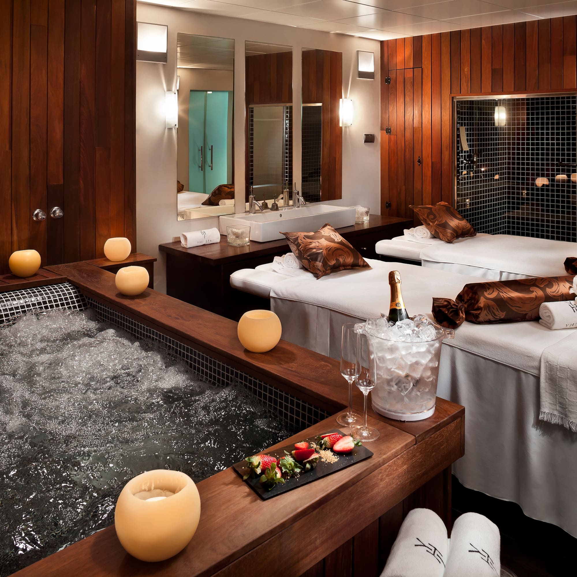 V našich lázních Yhi Spa o rozloze 2 500 m² si můžete dopřát zdravý a relaxační zážitek. Přidejte se k rituálu v termální vodě a aktivujte všechny své smysly při léčení těla, mysli i ducha. K dispozici je sedm masážních kabin, jedna pro dvě osoby s privátní vířivkou. Vychutnejte si dostatek přirozeného světla z kupole ve tvaru pyramidy, která vás dělí od oblohy Granady.