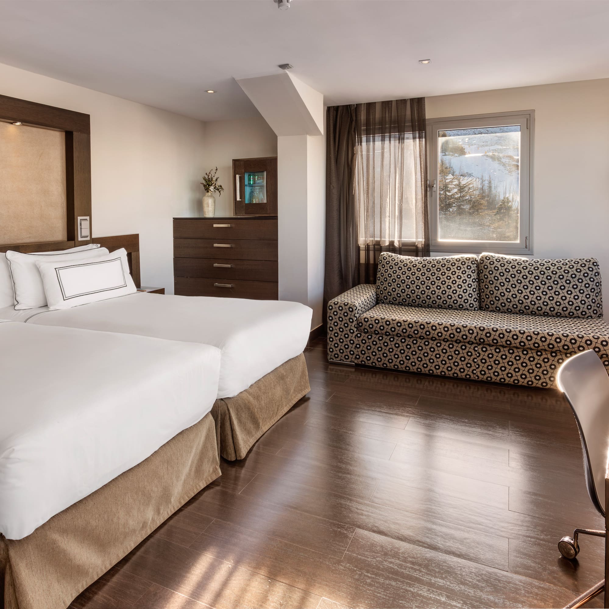 Nachází se v nejprivilegovanější části hotelu Meliá Sol y Nieve a užijte si více prostoru, praktickou předsíň-šatnu, která doprovází ložnici s plně vybavenou koupelnou, a všechny exkluzivní služby The Level.