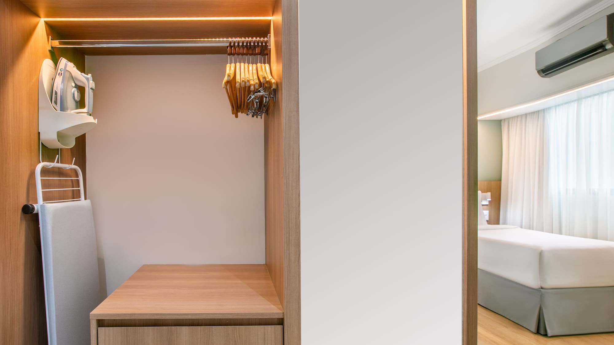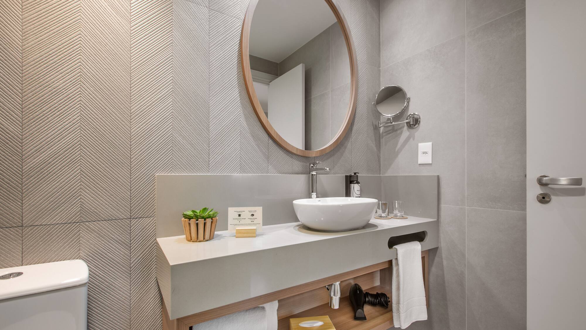 Ändern Sie Ihre Perspektive, sooft Sie wollen. Übernachten Sie im Herzen Itaim Bibis in einem Zimmer mit einem großen Schreibtisch und Bereichen für Ihre wohlverdiente Erholung, einem fantastischen Bett, einem Smart-TV und einem eleganten Badezimmer.