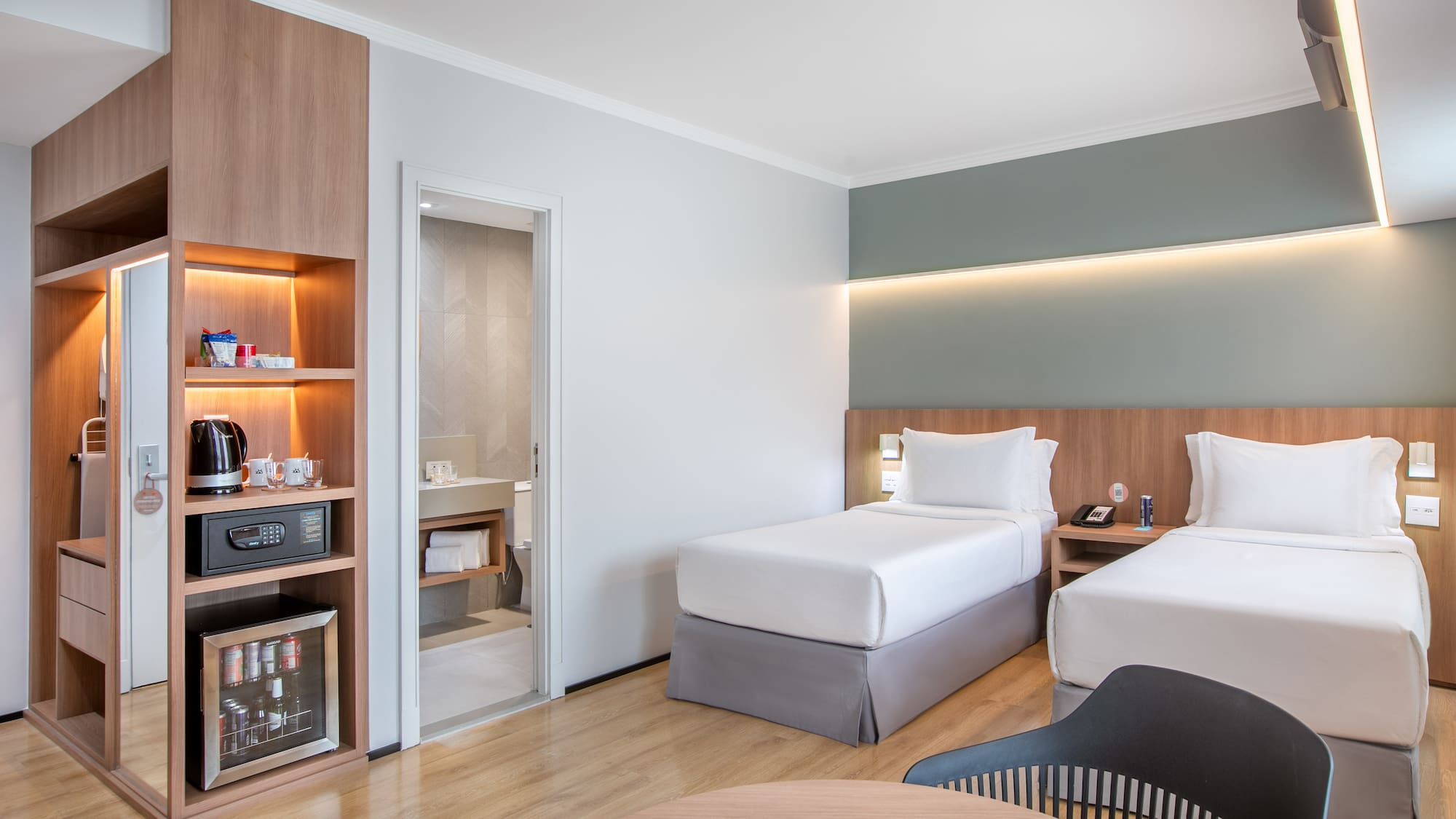 Übernachten Sie in diesem komfortablen und funktionalen Zimmer mit Blick auf die Stadt. Mit zwei Einzelbetten, einem Schreibtisch, einem großen Kleiderschrank und vielem mehr werden Sie Ihren Urlaub in São Paulo genießen, wie Sie es sich wünschen und verdienen.