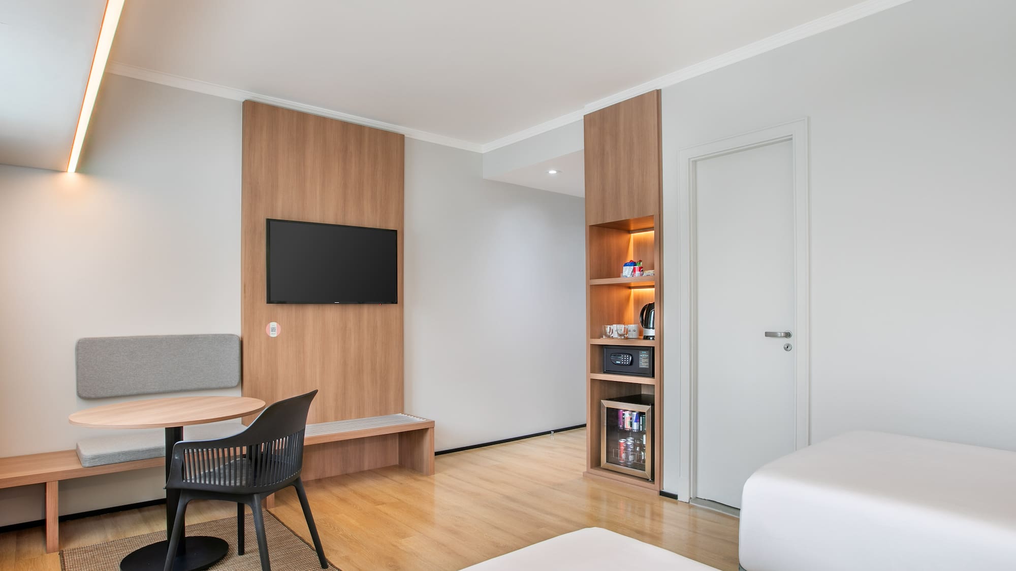 Die Ausstattung dieser Zimmer wird all Ihren Erwartungen gerecht: Heizung und Klimaanlage mit Klimakontrolle, 43 Zoll-TV, Highspeed-WLAN-Verbindung und digitaler Safe. Die neuste Technik für Ihren inneren „Nerd“.