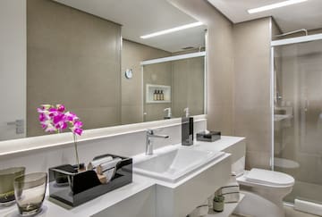 Staunen Sie über den spektakulären Ausblick von Ihrem Balkon auf das Itaim-Bibi-Viertel. Das Zimmer ist mit einem Kingsize-Bett, einem Tisch und einem Sessel ausgestattet. Außerdem verfügt es über einen TV und einen Wasserkocher mit einer Auswahl an Kaffee und Tee.