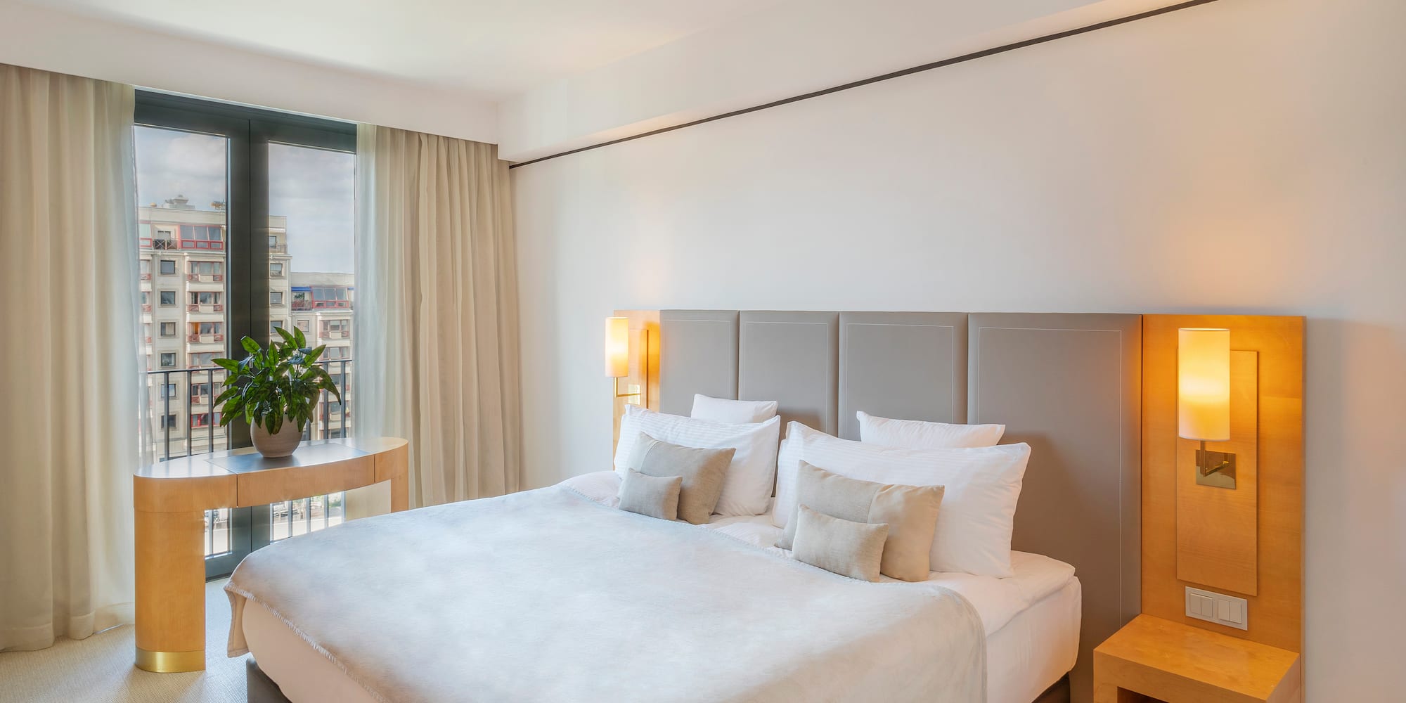 Dieses fantastische Zimmer bietet einen unschlagbaren Ausblick auf Berlin und ein wundervolles Designer-Schlafzimmer, eine separate Lounge, schallisolierte Fenster und die exklusiven The-Level-Services für Ihren maximalen Komfort.