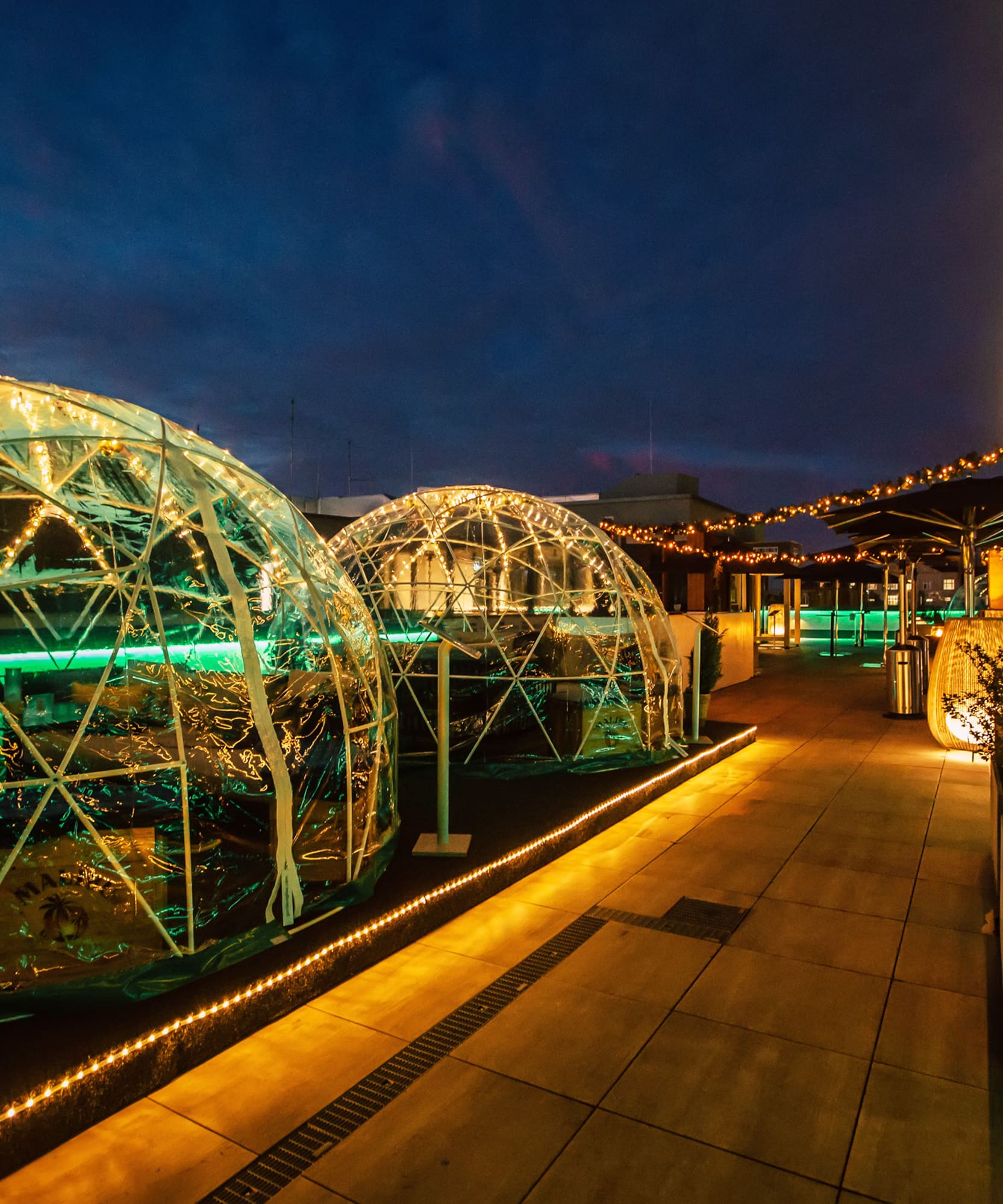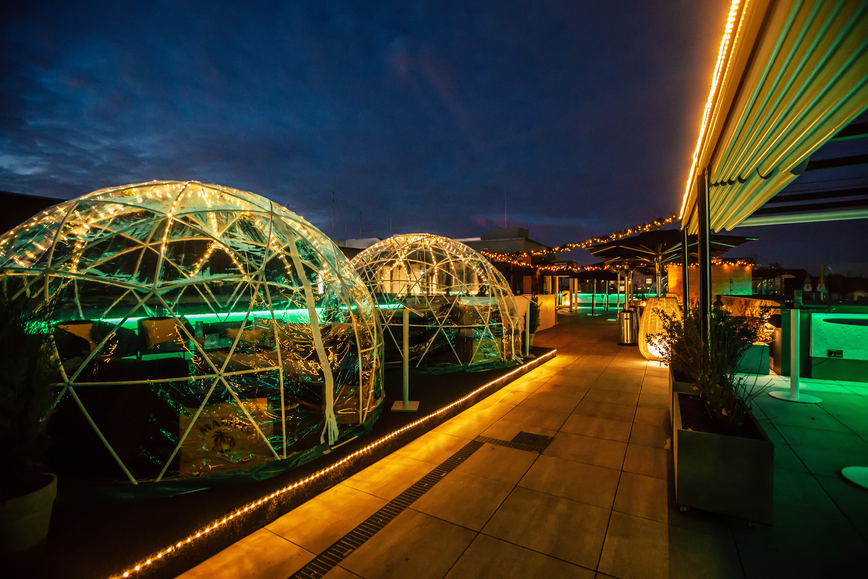 Im Winter (von November bis März) wird unsere Cabana Rooftop Terrace Bar zum Rooftop Iglu Experience mit 7 durchsichtigen, beheizten Iglus für bis zu 8 Personen auf der Dachterrasse beim Genuss von Speisen und Getränken à la carte, Glühwein oder köstlichem Fondue.