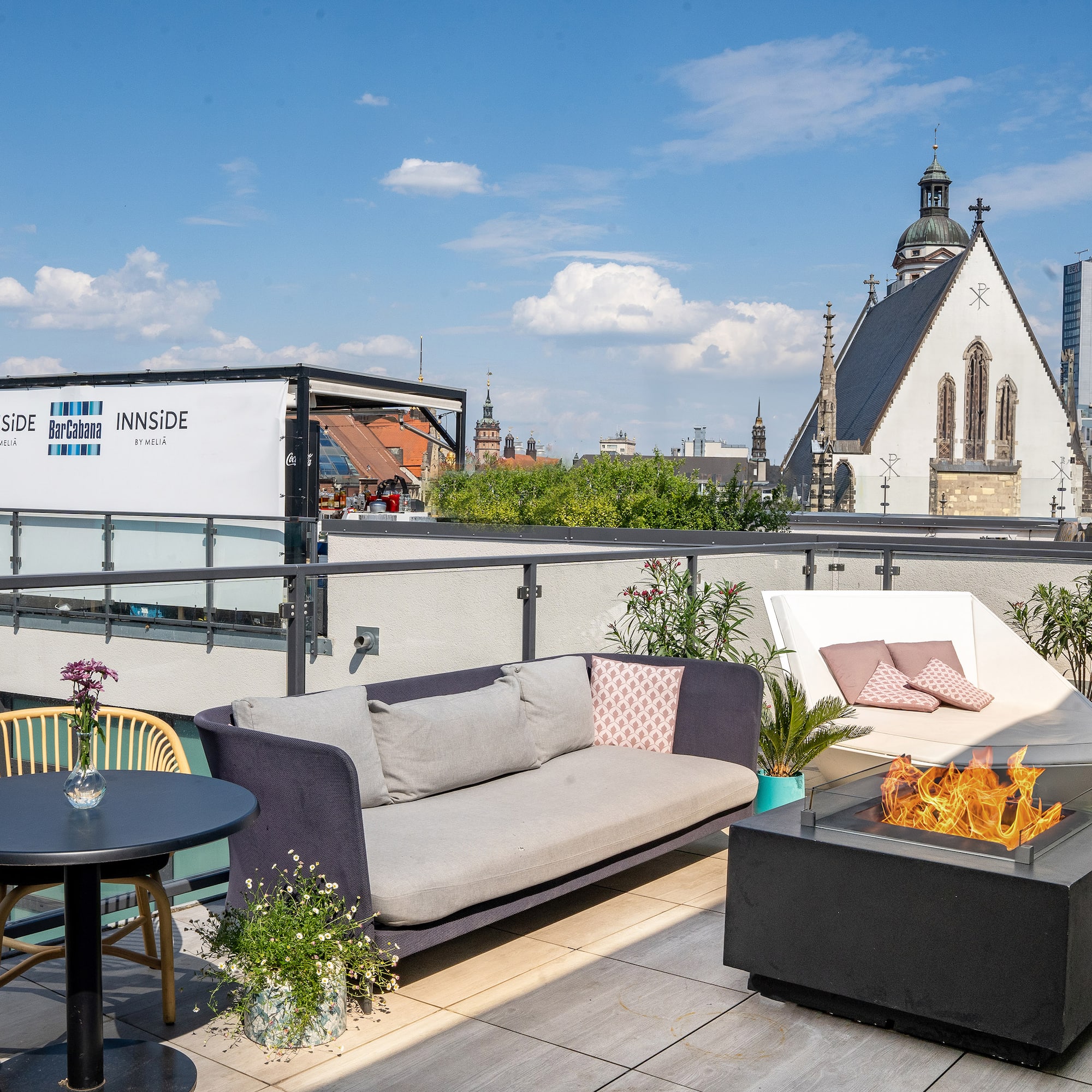 The INNSiDE Leipzig bietet allerbeste Panoramablick auf die City. Exklusive Dachterrasse in der Altstadt mit Blick auf Thomaskirche und die reizvolle Umgebung des Hotels. Der angesagteste Ort in Leipzig für ein Treffen mit Freunden, großartige Freizeitangebote und köstliche Drinks.