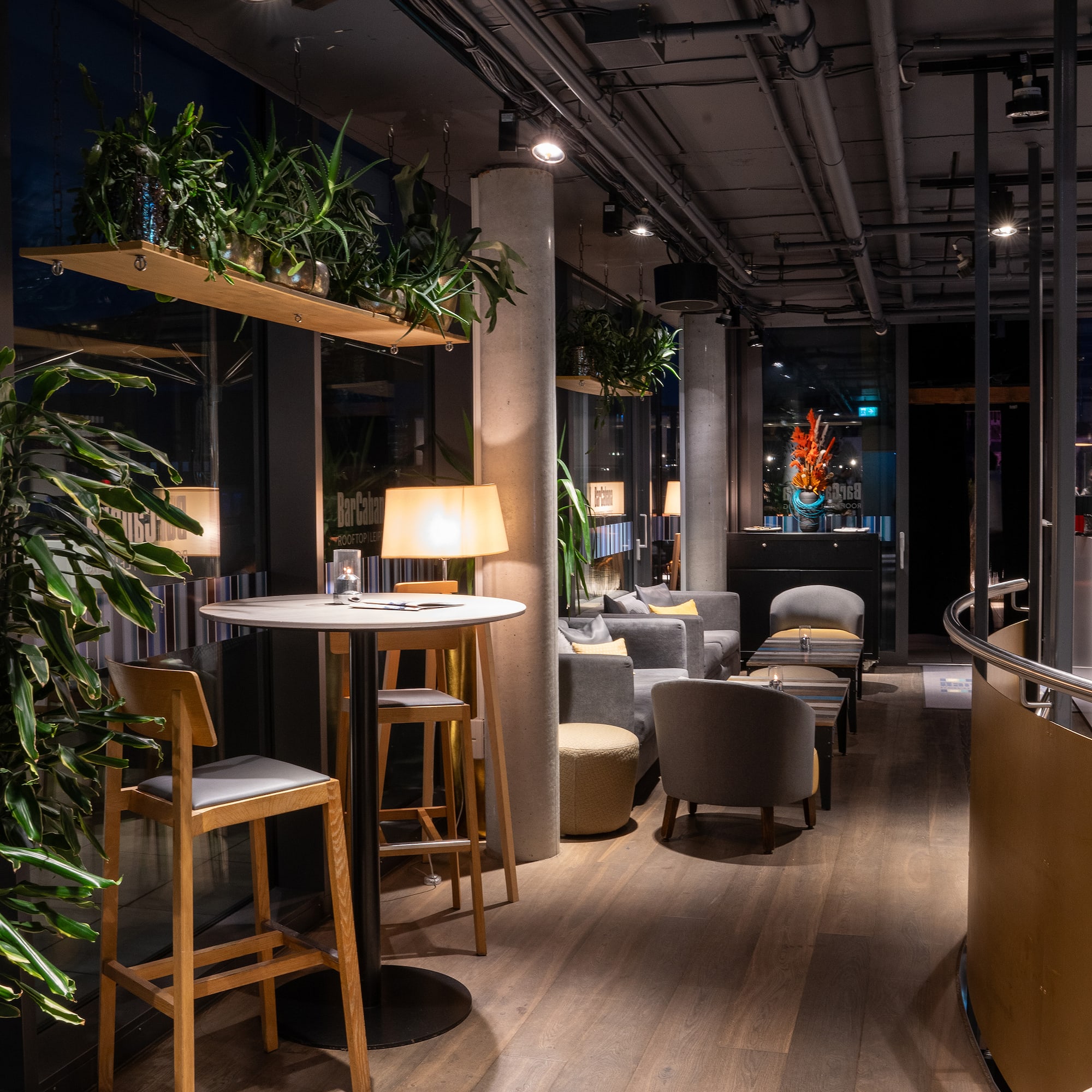 Farbenfrohe Dächer, Live-Musik, köstliche Cocktails und fantastisches Wohlfühlgefühl... all das ist hier in diesem trendigen Open-Air-Raum. Bewundern Sie auf unserer Terrasse eine andere Perspektive auf die Innenstadt. Erstaunliches Erlebnis!