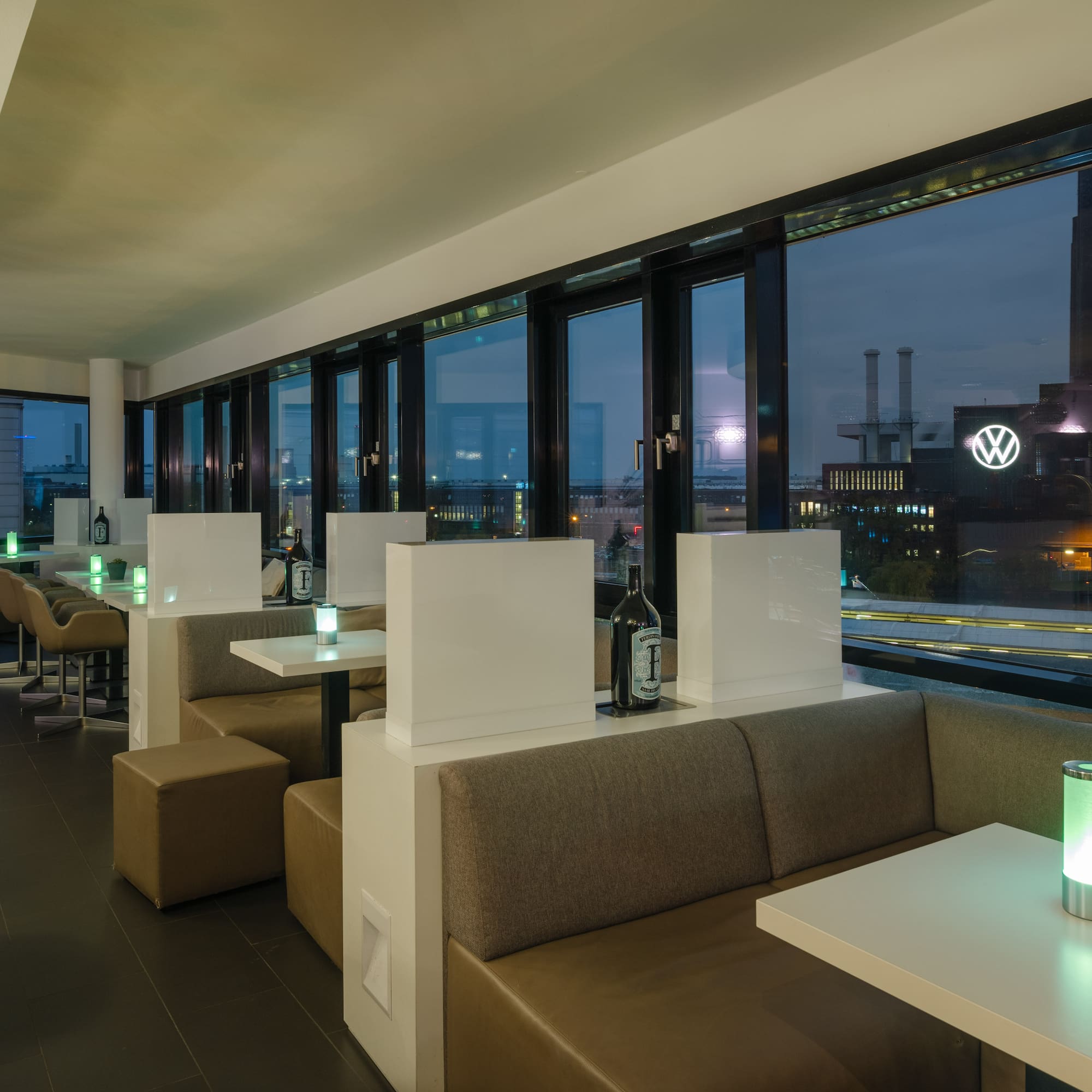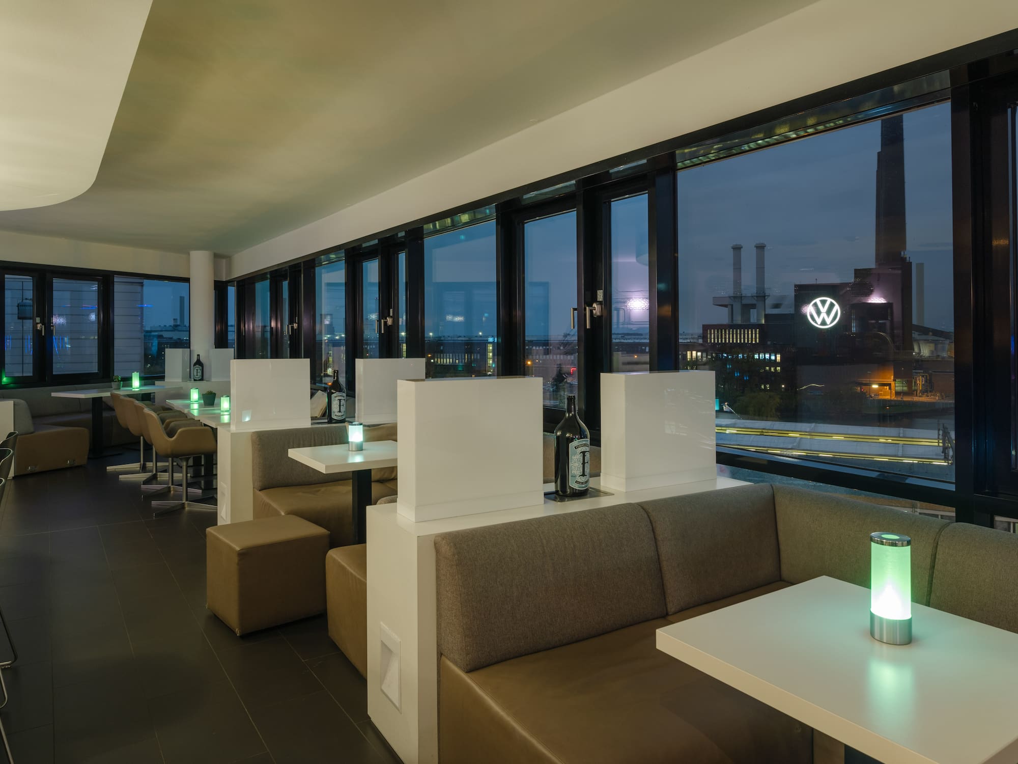 Ob für einen Aperitif, einen Drink nach der Arbeit oder einen spontanen Abend – unsere Skyline ist der ideale Ort, um die Essenz von Wolfsburg aus einer völlig neuen Perspektive zu erleben. Ein Raum, in dem der Rhythmus der Stadt von oben beobachtet wird, inmitten von Lichtern, Musik und einer Atmosphäre, die sich im Laufe des Tages wandelt.