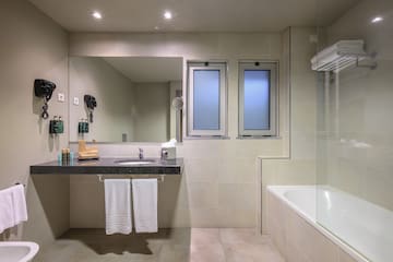 Ein elegantes und bequemes Zimmer mit einem unglaublichen Blick auf die Stadt. Komfort mit zwei Einzelbetten oder Doppelbett, komplettes Badezimmer mit Pflegeprodukten, Schreibtisch, Sessel, Wasserkocher, Klimaanlage, Minibar und Safe.