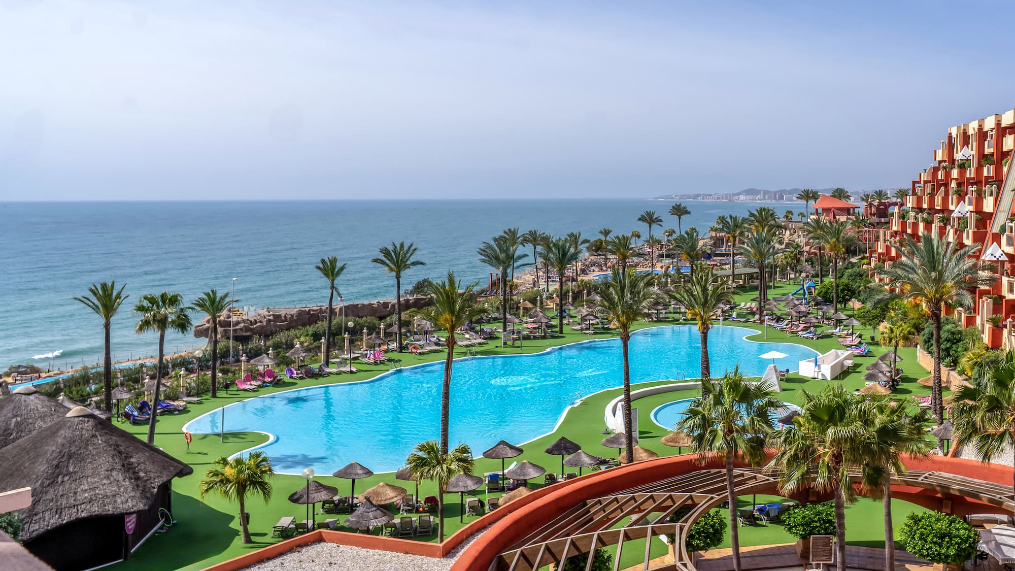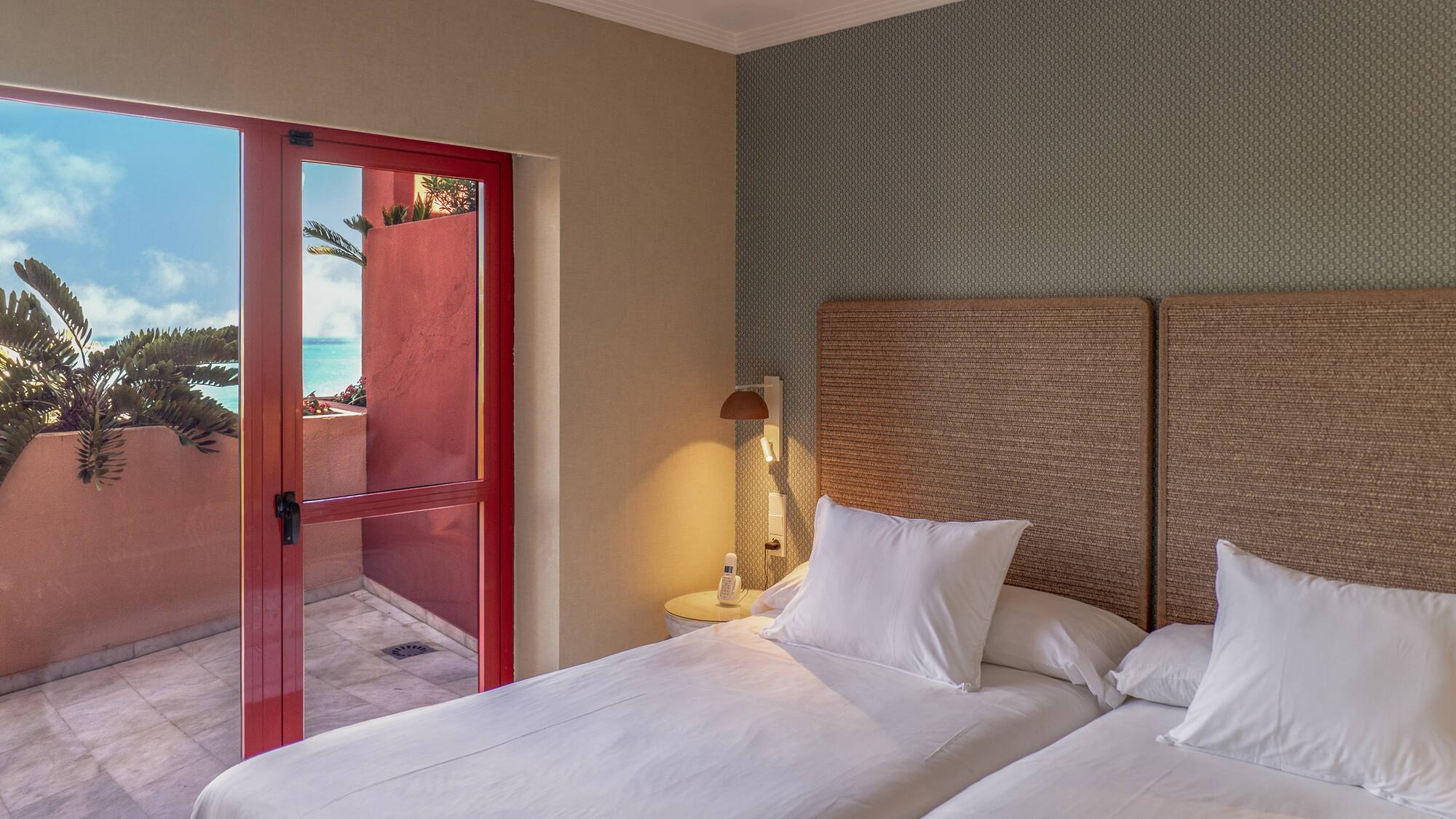 Genießen Sie von der Terrasse dieses Zimmers den Blick auf das Mittelmeer. Es verfügt über ein Schlafzimmer mit zwei Einzelbetten, ein komplettes Badezimmer und einen Wohn-Essbereich mit Schlafsofa. Erleben Sie einen unvergesslichen Urlaub im Holiday World Village Affiliated by Meliá.