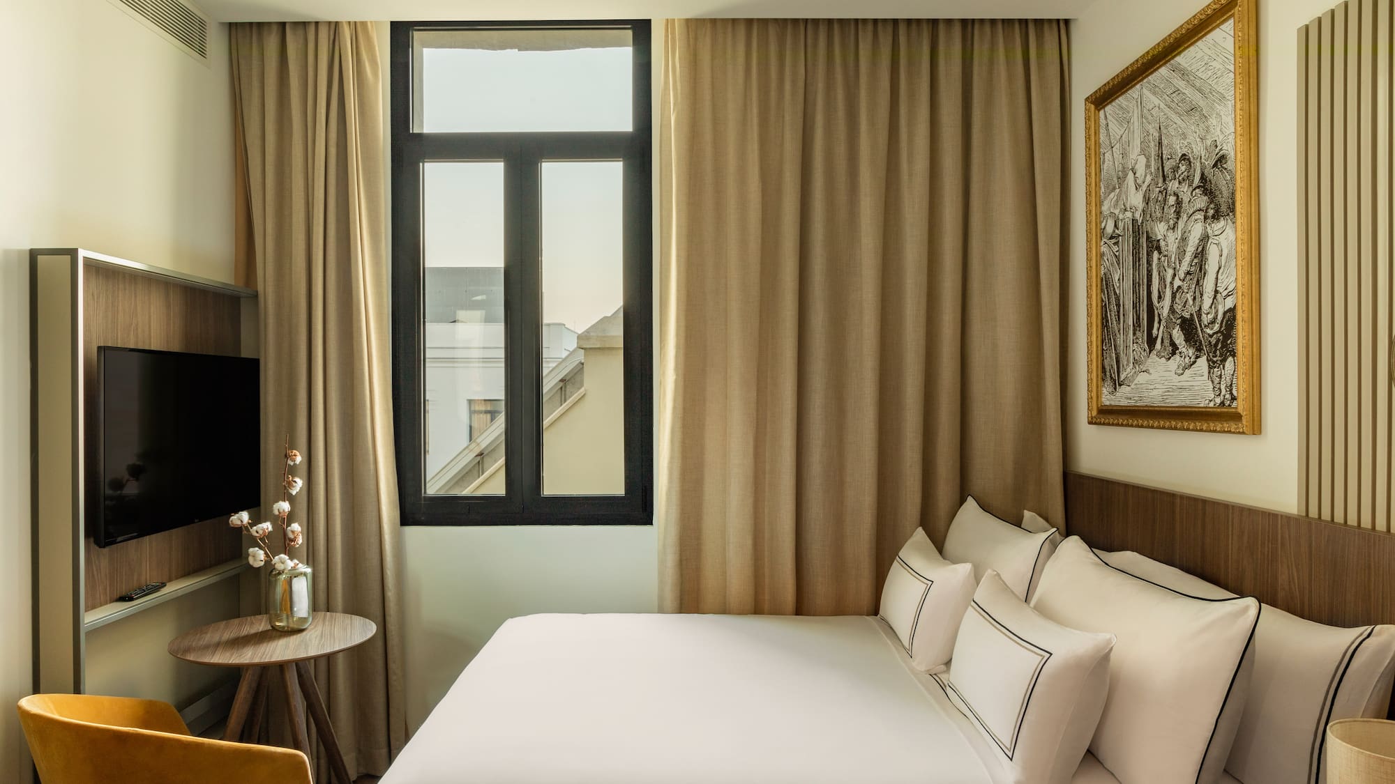 Bewundern Sie Madrid aus einem Zimmer voller Kunst und Raffinesse. Inspiriert von der kulturellen Essenz des Barrio de las Letras, kombiniert es hochwertige Materialien und einzigartige Details mit einem Blick auf die Stadt, um maximalen Komfort zu gewährleisten.