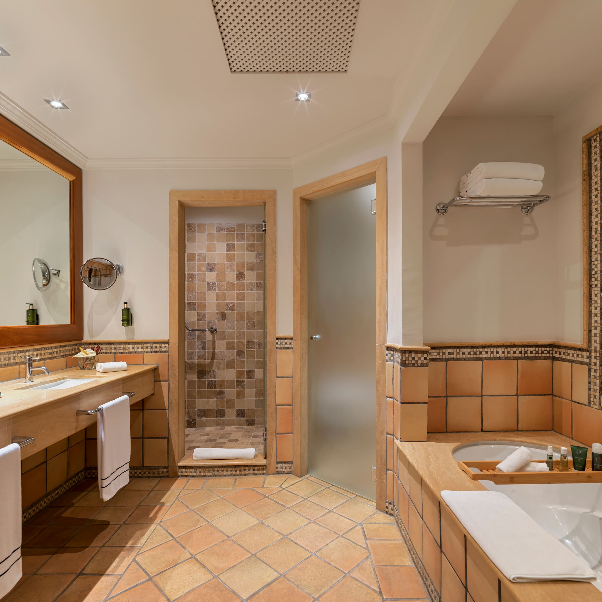 Entspannen Sie wie nie zuvor in der Whirlpool-Badewanne und bewundern Sie die atemberaubende Schönheit des Ozeans von dieser spektakulären Suite aus, die Insel-Luxus mit einer modernen Wellness-Philosophie verbindet. Die exklusivste Unterkunft des Hotels mit dem Atlantischen Ozean als Kulisse.