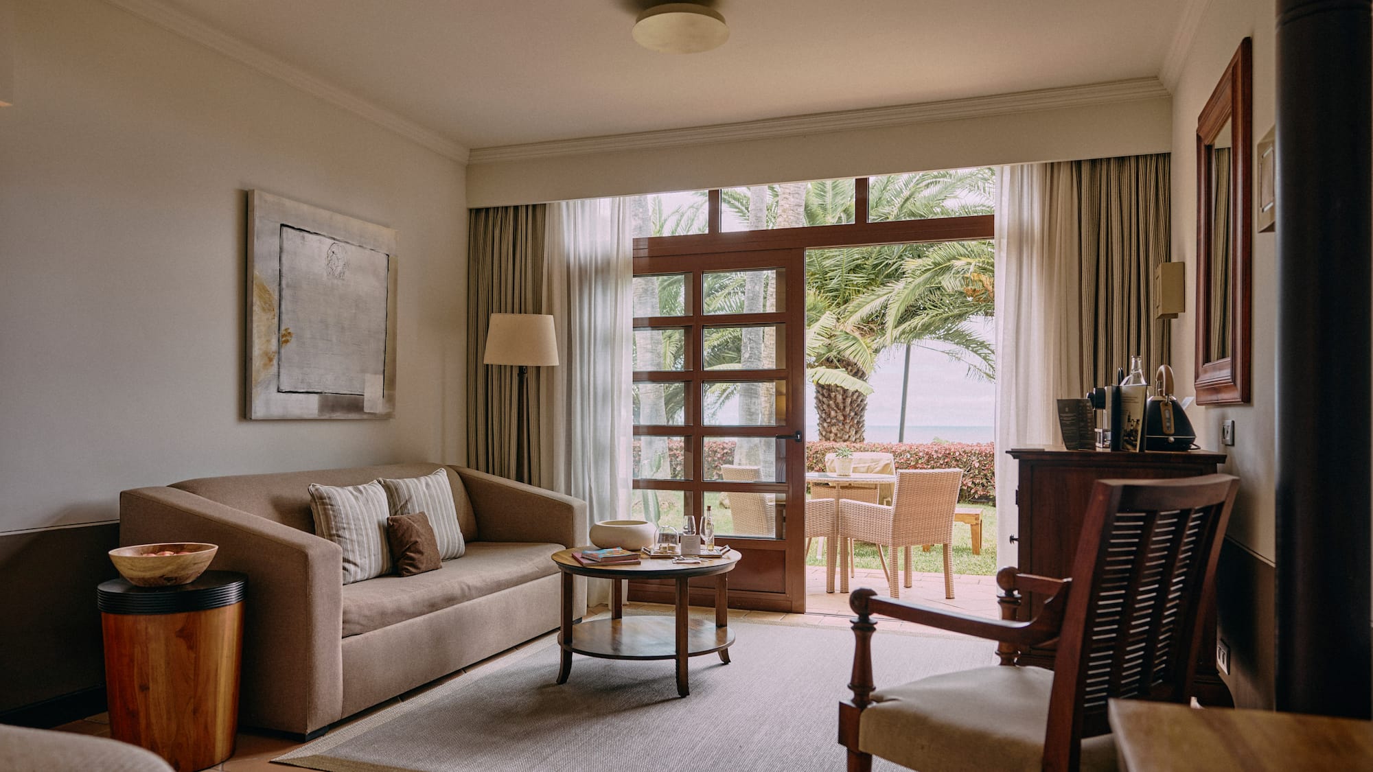 Vertrauen Sie uns Ihre garantierte Erholung an. Helles Zimmer im Kolonialstil mit viel Platz, Schlafraum mit zwei Einzelbetten, Lounge mit Sofas und herrlicher Terrasse. Das Vergnügen, auf Teneriffa erwachsen zu sein.