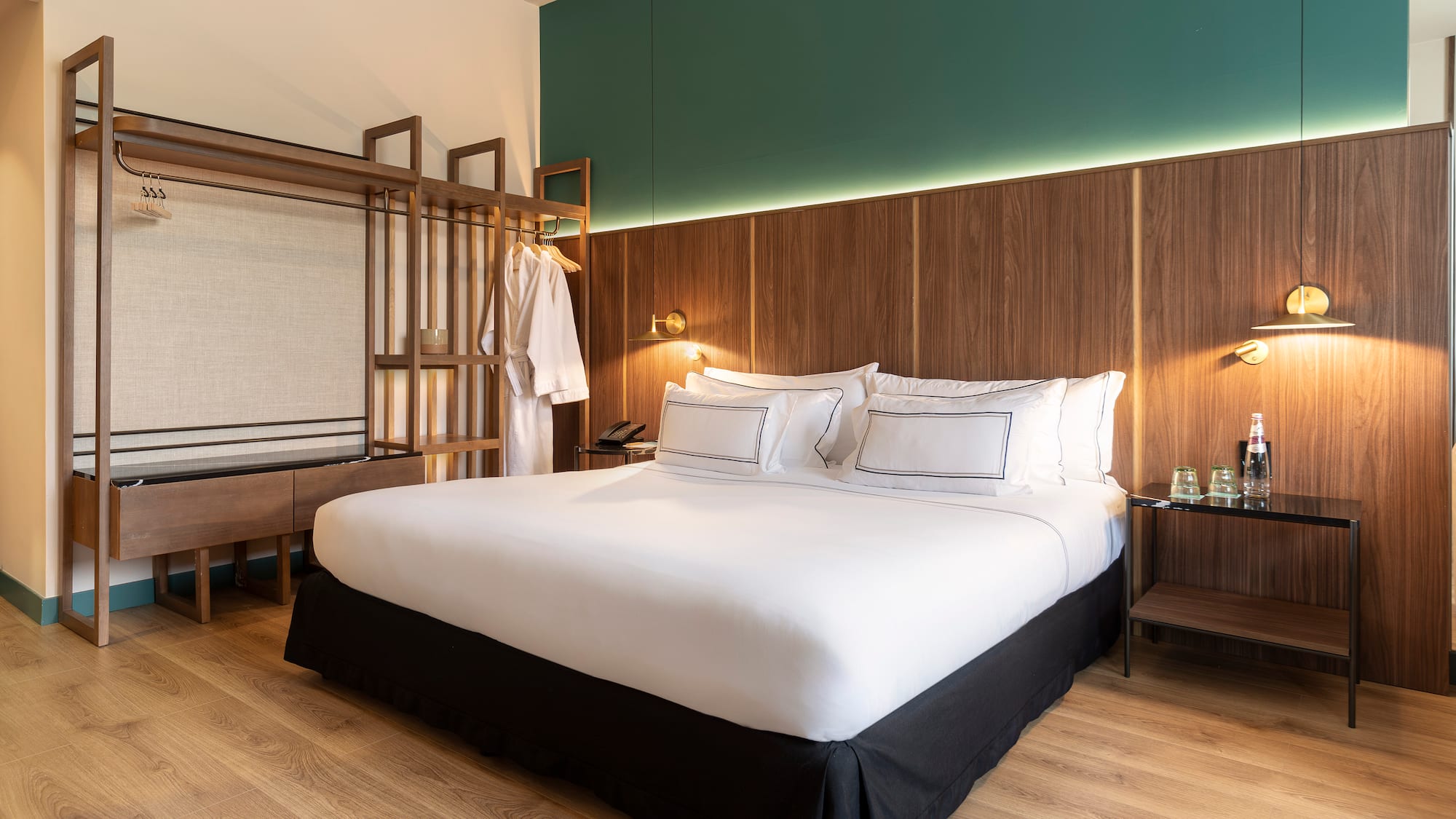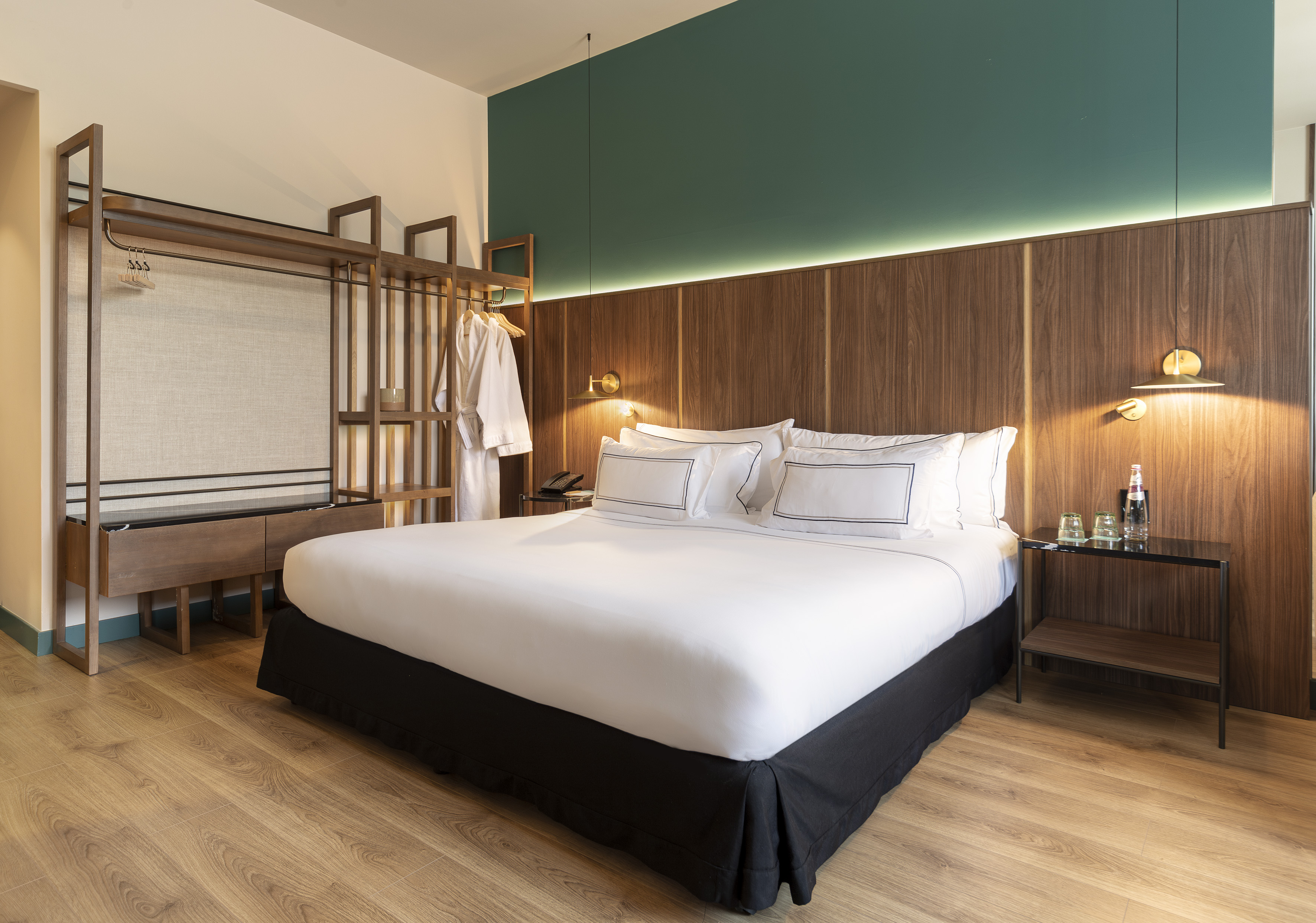 Η κομψότητα και η λειτουργικότητα συνδυάζονται στον σχεδιασμό ενός δωματίου με άψογη μινιμαλιστική διακόσμηση και φωτεινή και φιλόξενη ατμόσφαιρα. Παρέχει ένα άνετο διπλό κρεβάτι, ένα γραφείο, μια ντουλάπα και ένα πλήρες μπάνιο.