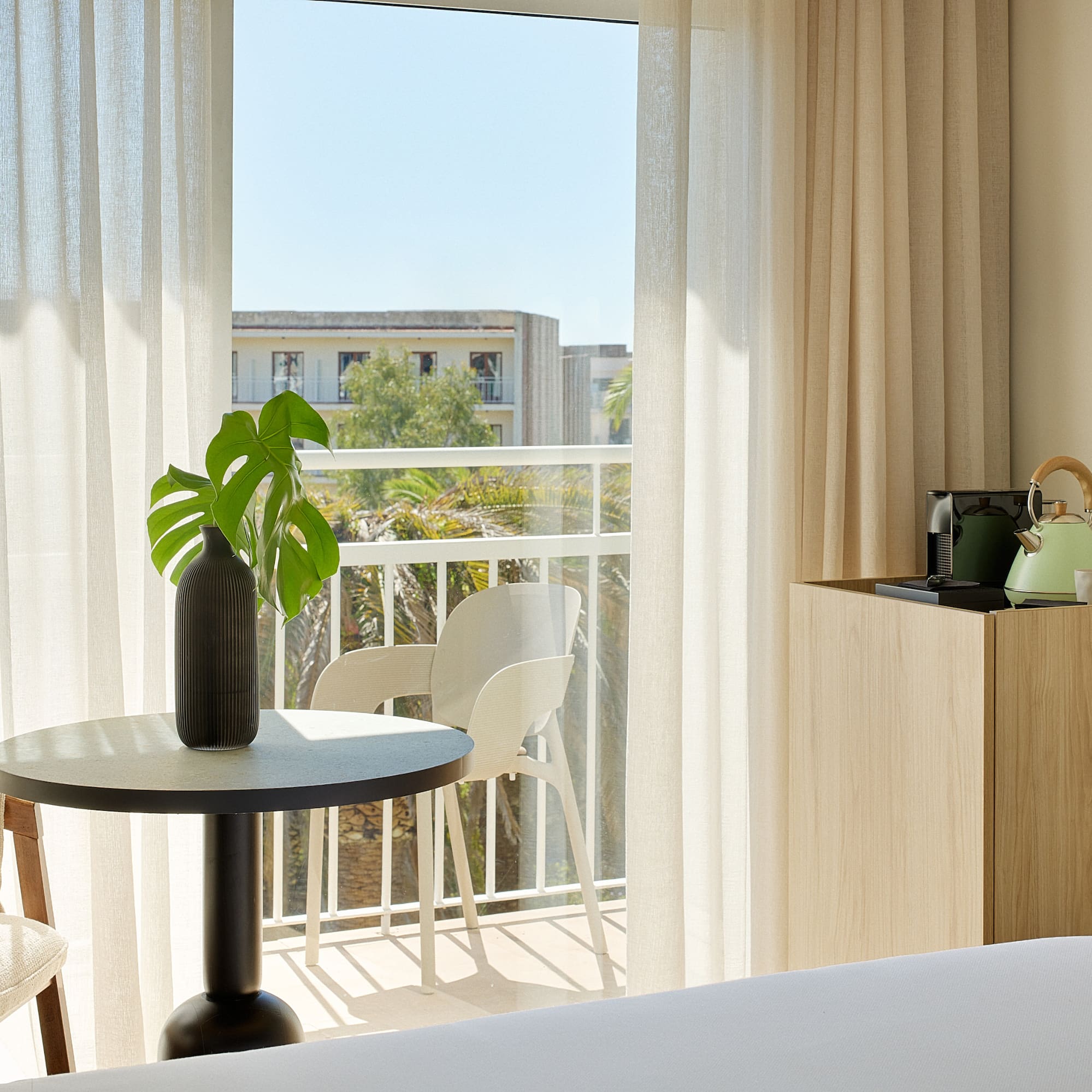 Wake up every morning admiring the hotel's beautiful gardens from the balcony of this room. A bright room with a warm decoration that will help you rest in its comfortable bed and relax thanks to the wide range of amenities it offers.