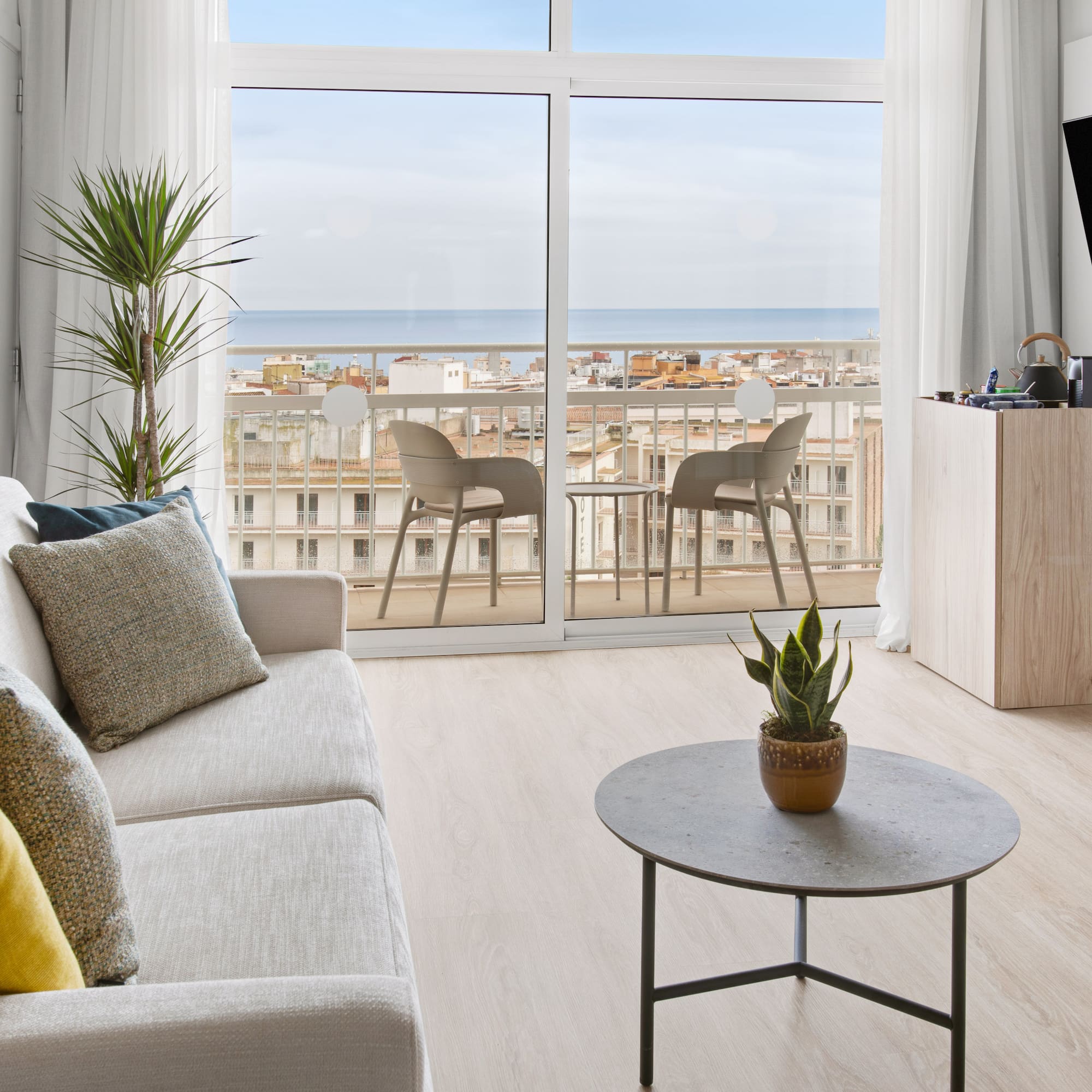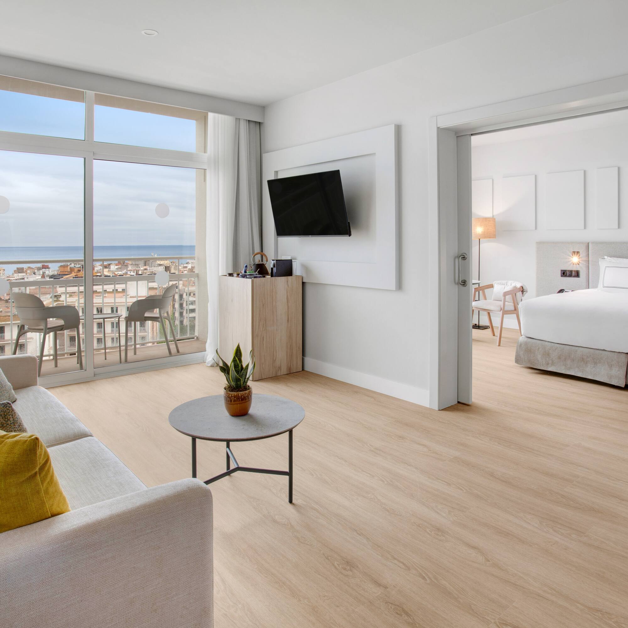 Start an amazing journey on the Costa Brava. Beaches, charming villages, and this suite as a starting point. A spacious room with a terrace, a bedroom and a separate lounge, and a yoga class by Xuan Lan.