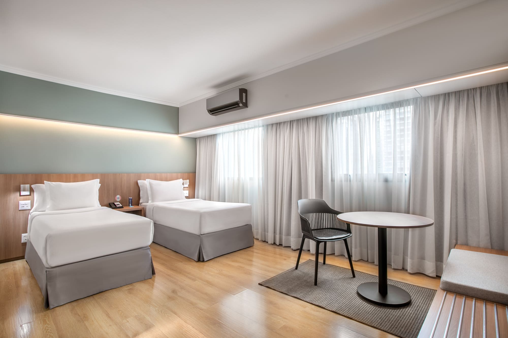 Stay in a comfortable and functional room with views of the city. Its two single beds, a desk and a large closet, among other details, will help you enjoy the vacation in Sao Paulo that you need and deserve.