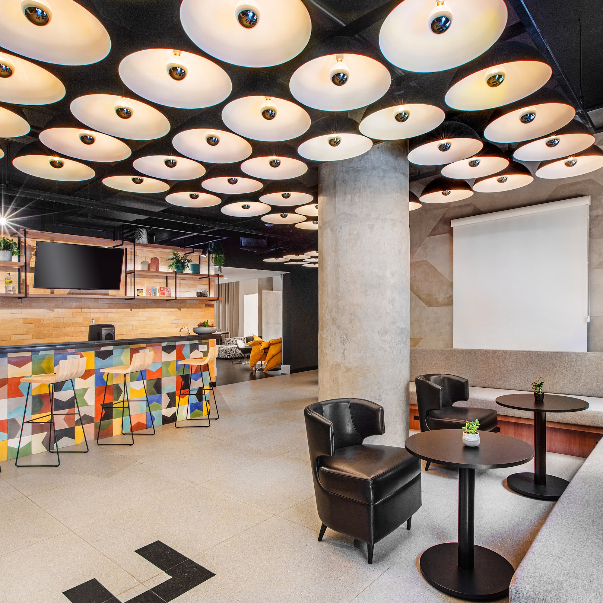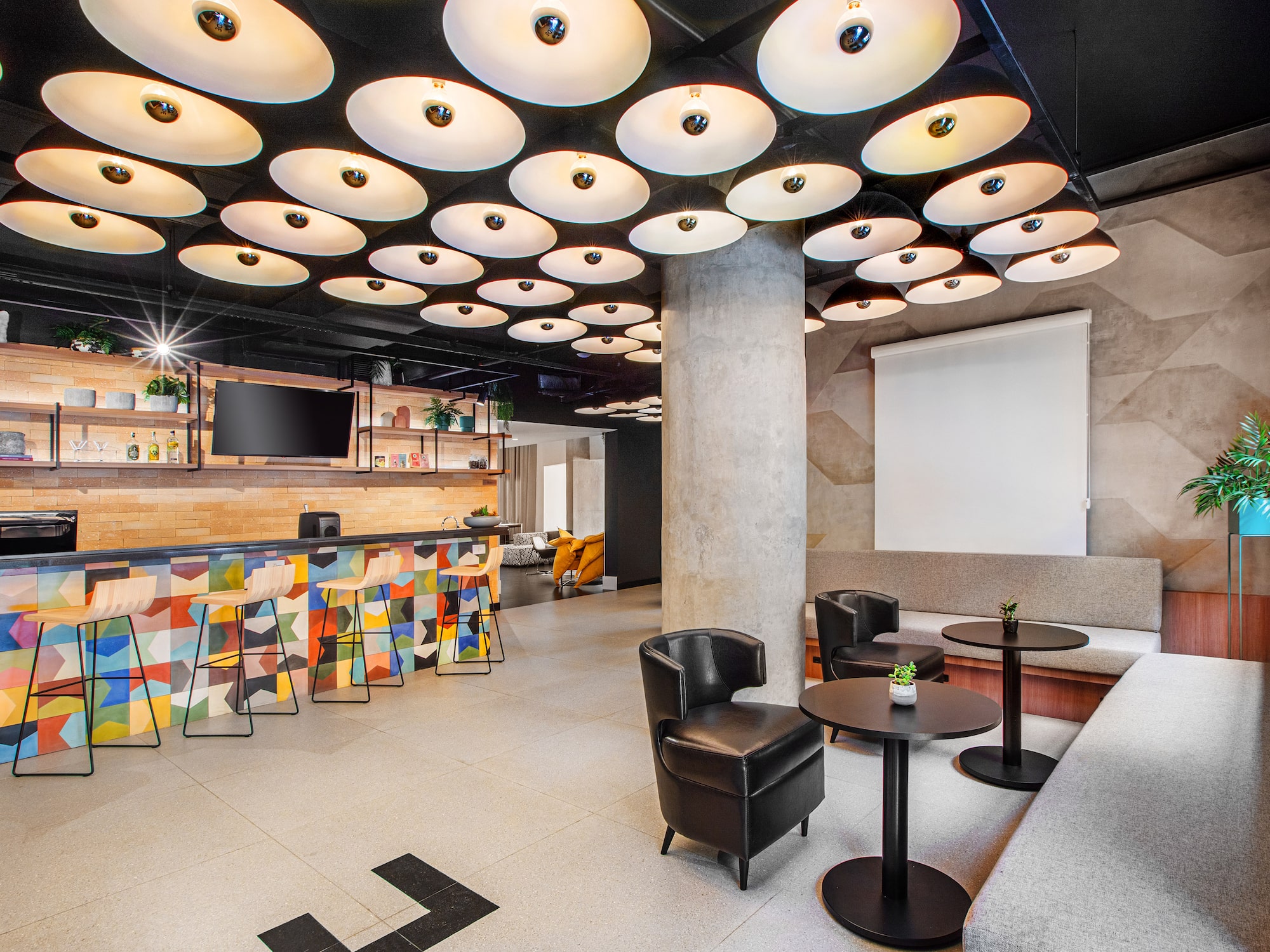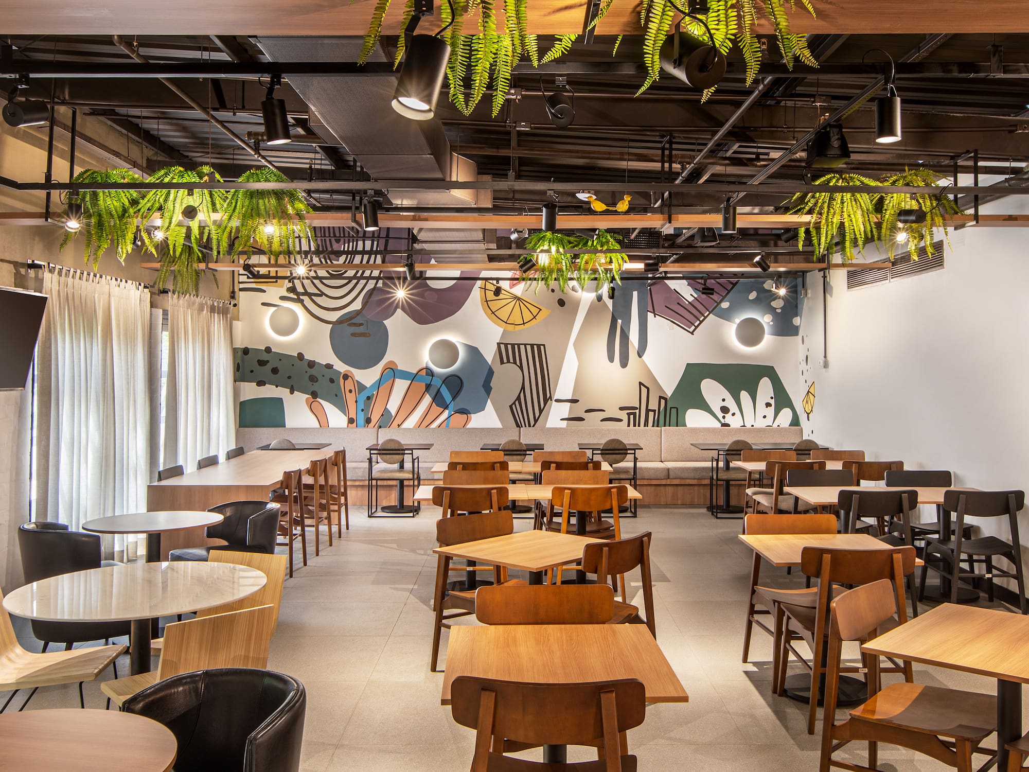 A modern interior full of energy, with warm wooden furniture, vibrant colors and details that invite you to relax and enjoy. Perfect for dining, sharing or working, this space reflects the urban and casual attitude of Bite Box, with all the personality and character of the most avant-garde district in São Paulo.