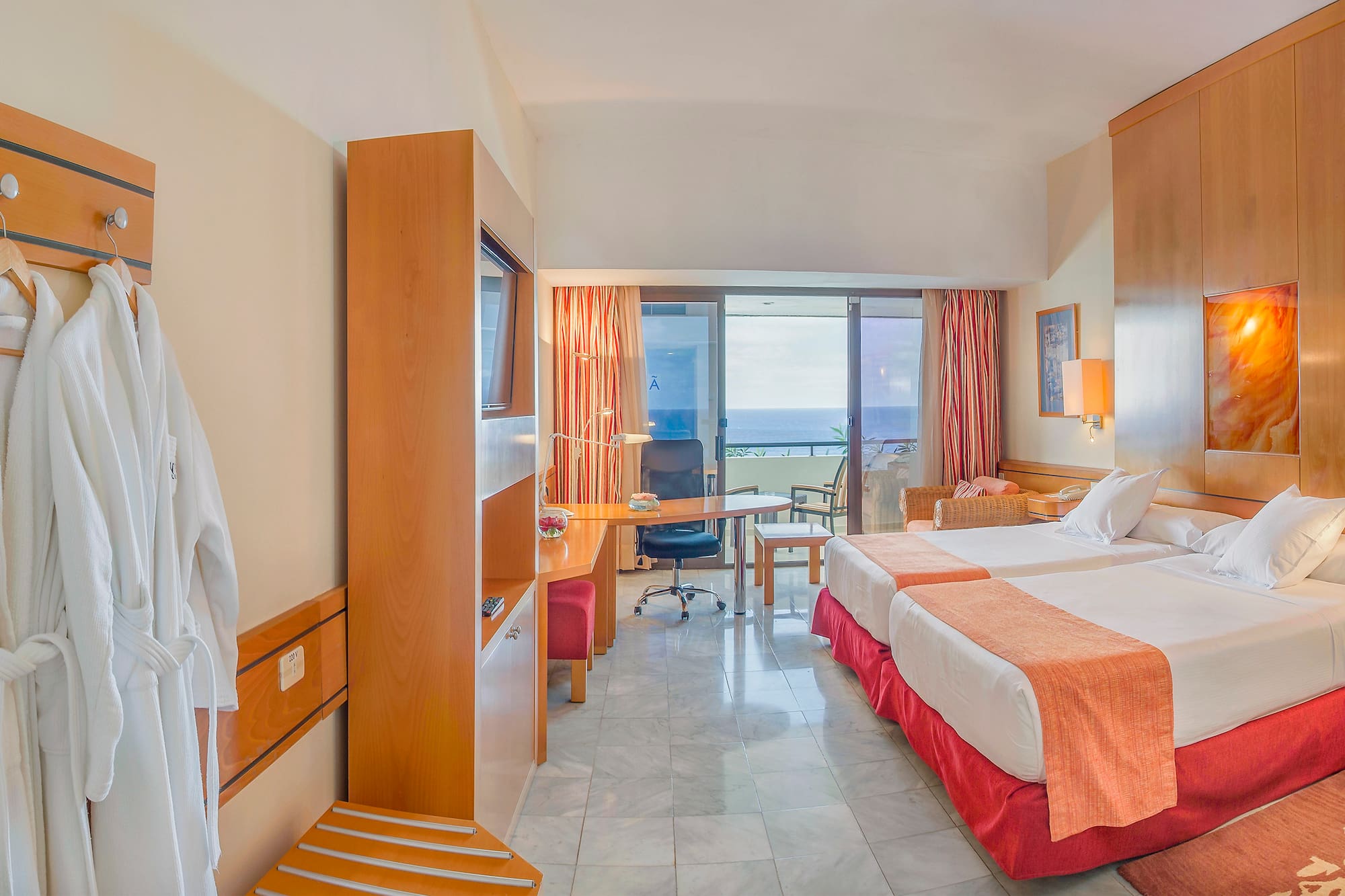 With views of the garden or pool, this room features a wonderful combination of natural light, relaxing colours and attractive furniture. A coffee maker, satellite TV, safe and minibar are just some of its many functional facilities.