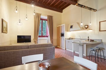 Discover our elegant apartment in the village of Artimino, with a shared or private outdoor area with a terrace or garden. Ideal for families, it provides a separate bedroom, a lounge with a sofa-bed and a fully equipped kitchen. Perfect for enjoying a more leisurely pace of life.