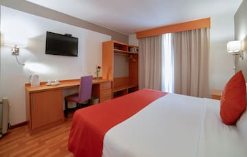 A spacious, comfortable and functional room with all the details specially designed for guests with reduced mobility. It provides a double bed, cable TV and spacious bathroom with a shower, amenities and hairdryer.