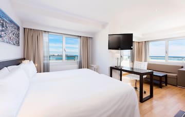 This room with spectacular views of the sea or the Castle of Santa Bárbara is perfect for a city break in Alicante. It has a bed, a lounge area, TV and kettle for making coffee and tea. A bathroom with a bathtub, amenities, a bathrobe and slippers add even greater comfort.
