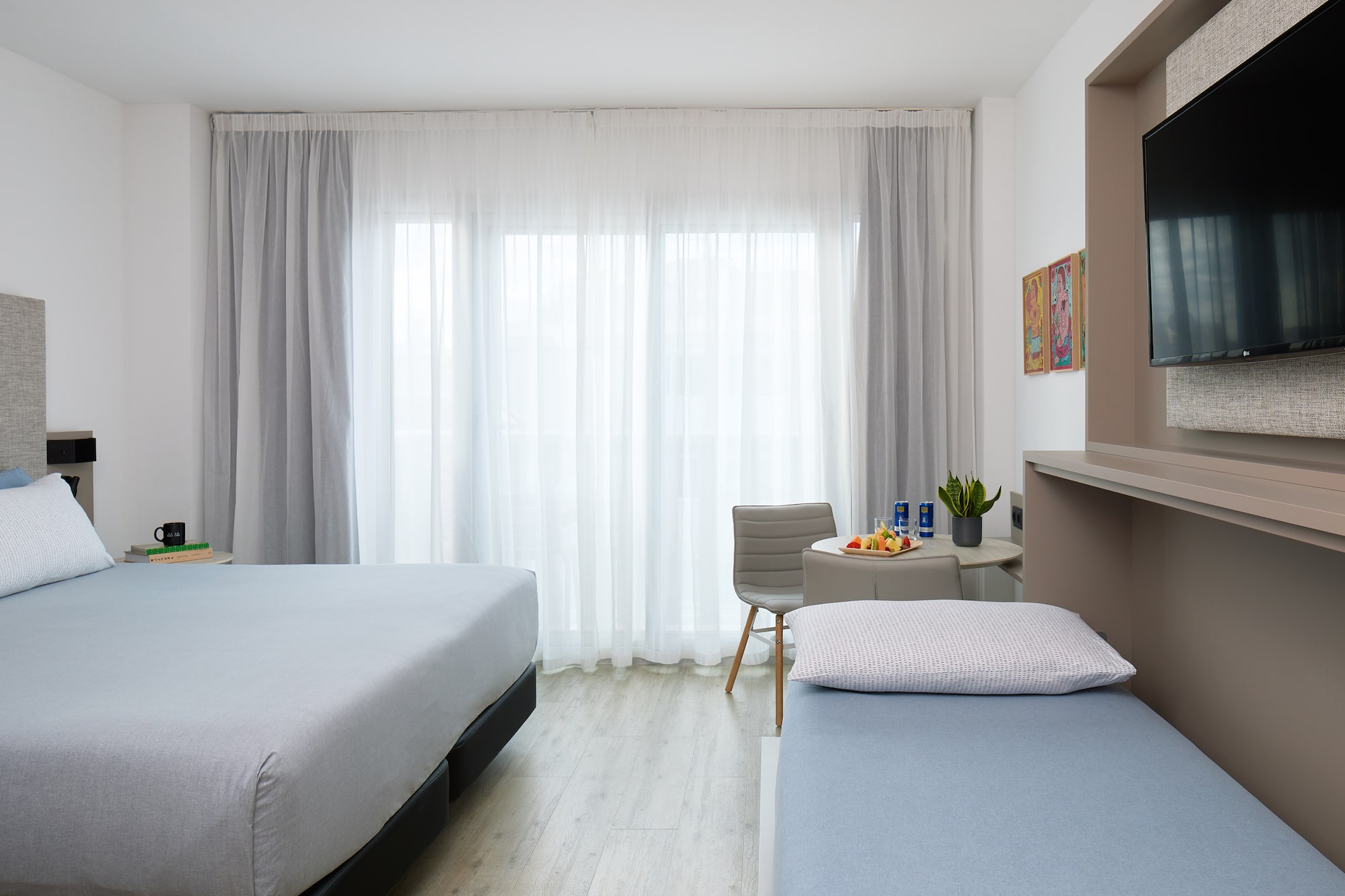 Go up to the 4th or 5th floor and let the daylight wake you up every morning. A room with views of Barcelona and all the functional equipment to help you have an incredible vacation in Barcelona. Ironing equipment, yoga mat, TV with Chromecast, Nespresso coffee maker, complimentary minibar... Anything you can imagine to make you smile.