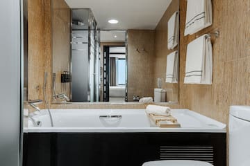 Stay in a room designed to experience the city in the most privileged way and at the end of the day discover a space where you can unwind. Its sophisticated design includes modern amenities to create an urban oasis, complemented by the benefits of The Level and panoramic views of Barcelona.