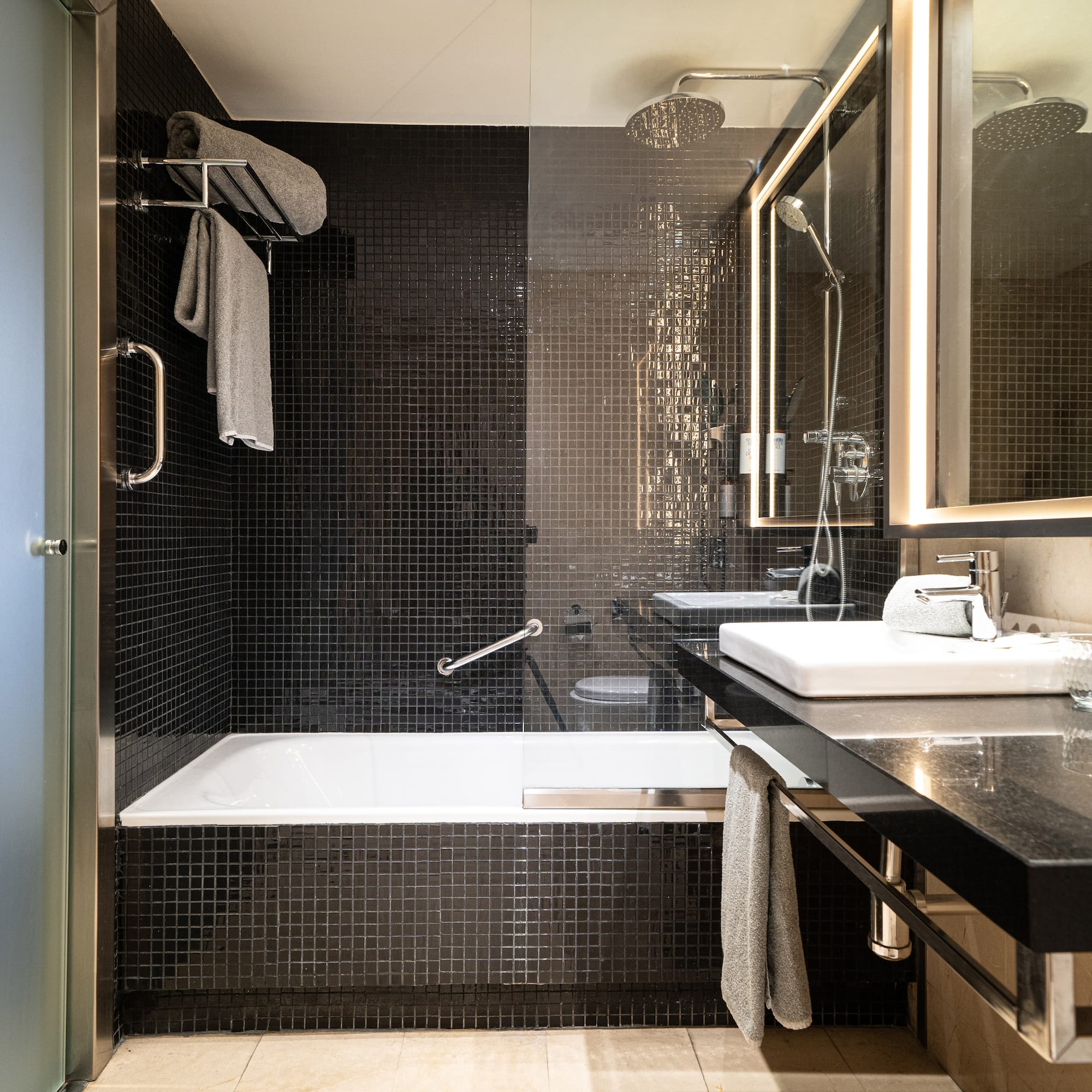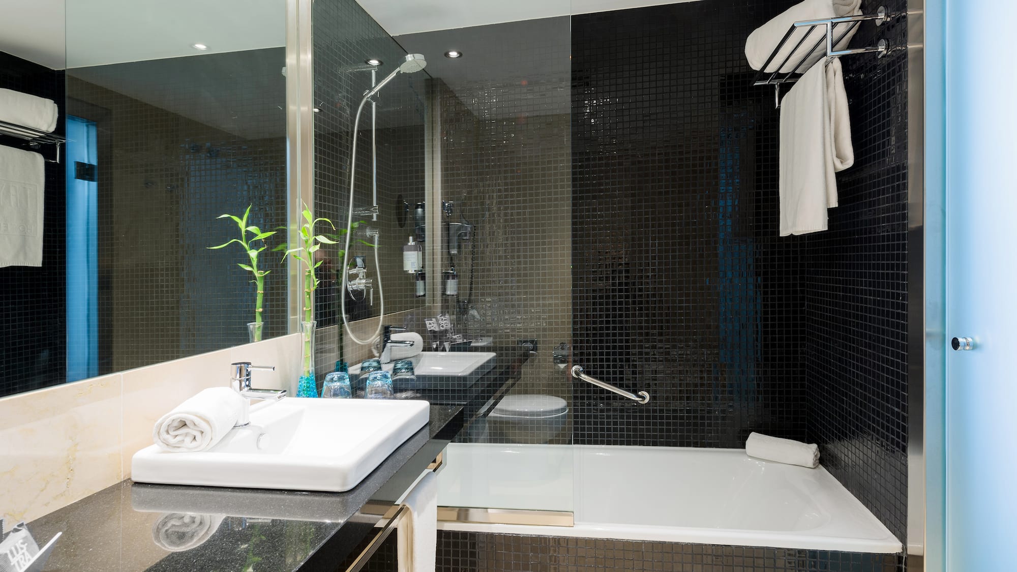 Enjoy a stay in this modern and elegant room overlooking La Victoria Beach. It features a comfortable bed, kettle with coffee and tea service, and a bathroom with a bathtub or shower (on request, subject to availability).
