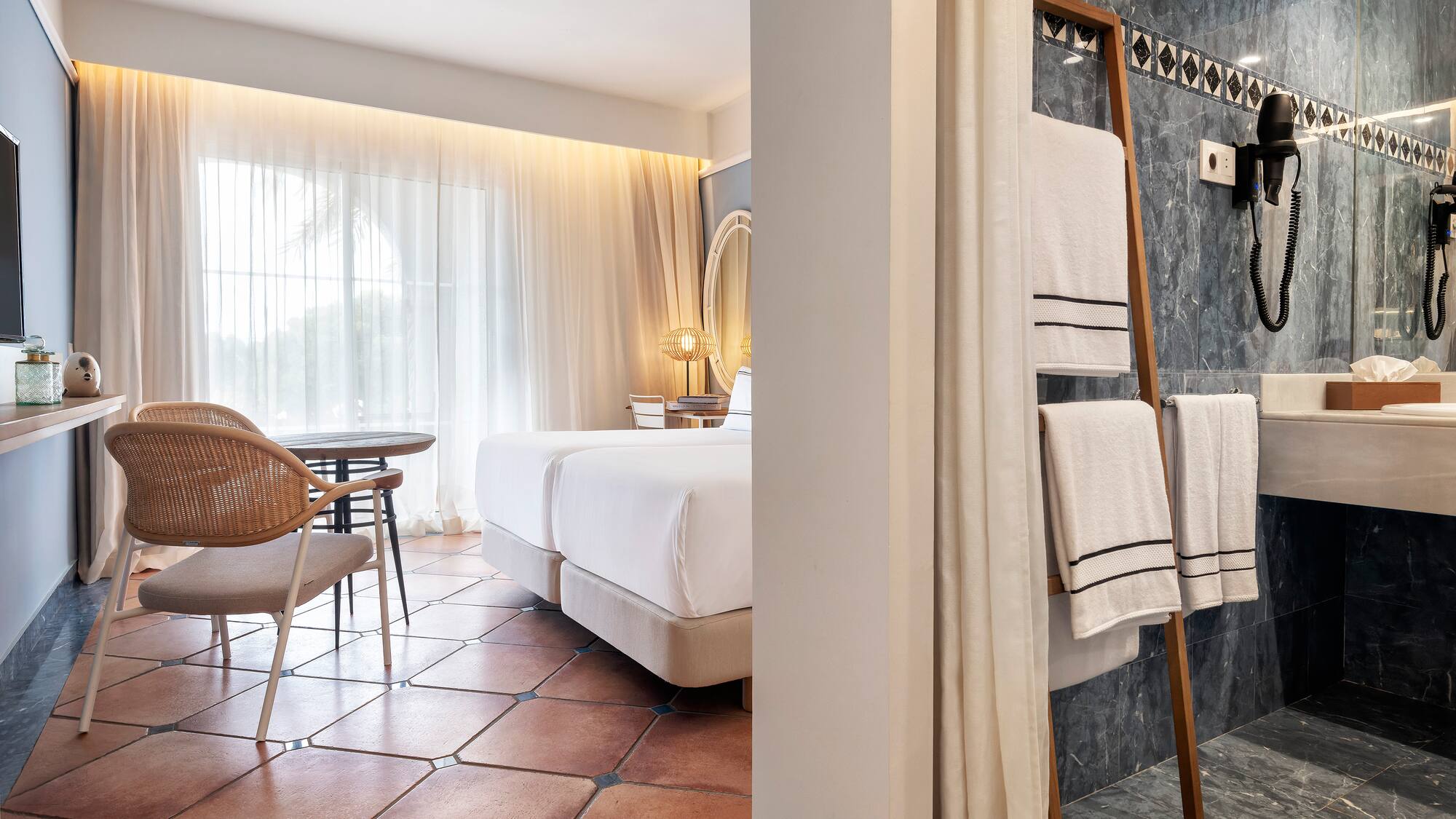 Enjoy all the warmth of the Costa de la Luz from a room with a terrace that provides beautiful views of the sunset and the sea. Located on the highest floors of the main building, it also allows access to all The Level services.