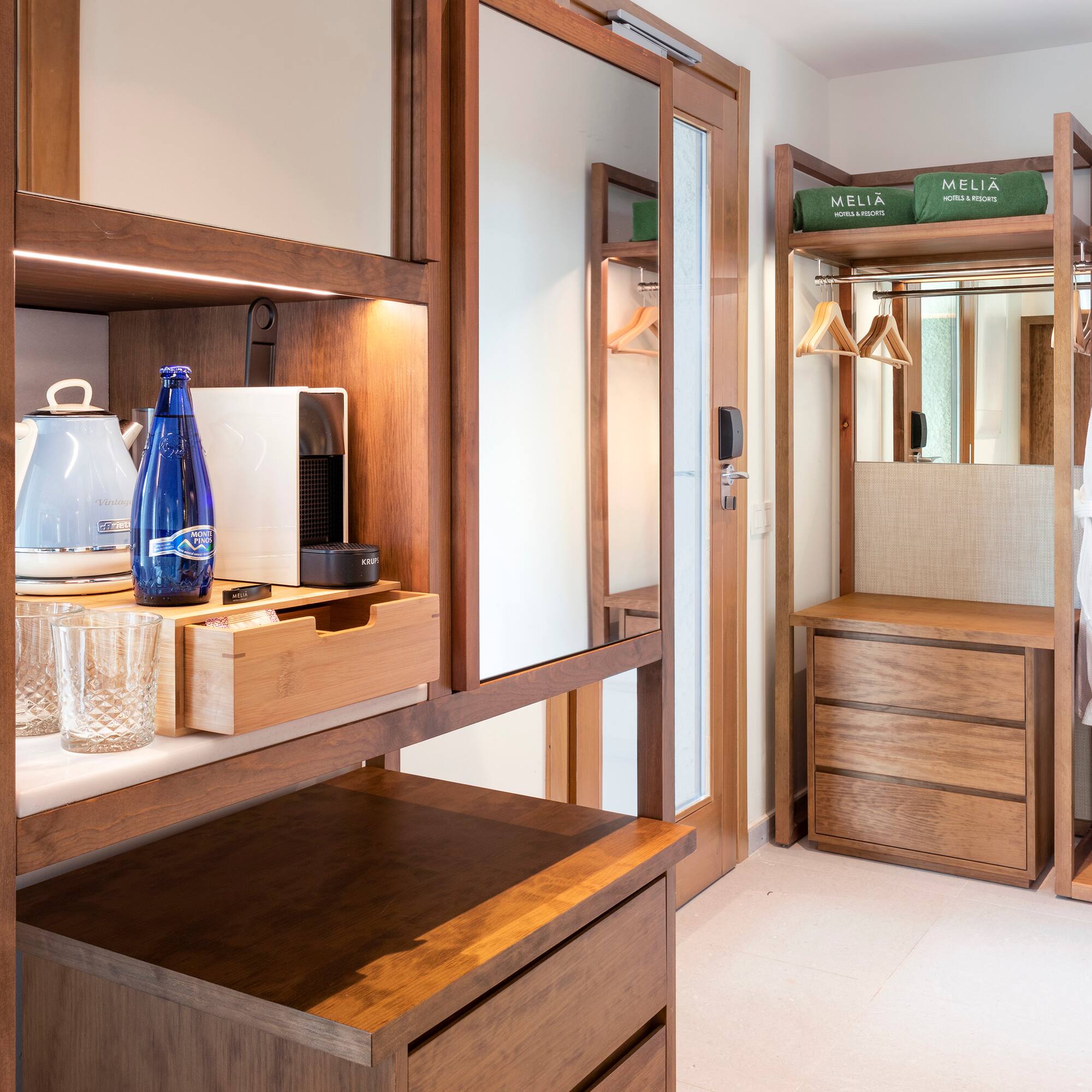 This exclusive and sophisticated villa is fully equipped. You will find a multimedia entertainment centre with Chromecast, to enjoy your favourite content. You can make your own tea or coffee at any time in the comfort of your room. We have prepared special amenities for the little ones, including a charming corner with a teepee.