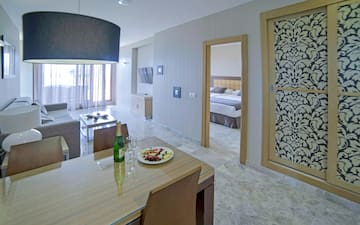 Enjoy a superior stay at Holiday World Polynesia Affiliated by Meliá. Stay in this spacious suite in Benalmádena, designed to combine comfort and privacy alongside the sea; the different spaces and terrace with whirlpool bathtub invite you to relax while admiring the views and savoring the Mediterranean ambience in Benalmádena. Enjoy moments of rest in a privileged environment.