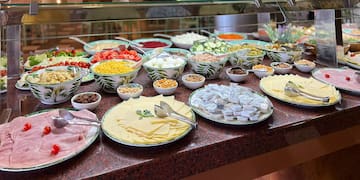 The restaurant offers a buffet service for breakfast, lunch and dinner with a wide range of hot and cold dishes and desserts. It also includes options adapted for guests with food allergies and intolerances as well as theme nights.