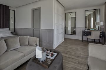 Mediterranean elegance and calm in this comfortable space. Discover a room with a queen-size bed and a lounge with views of the patio. Perfect for travelers seeking the most exclusive rest in Ibiza.