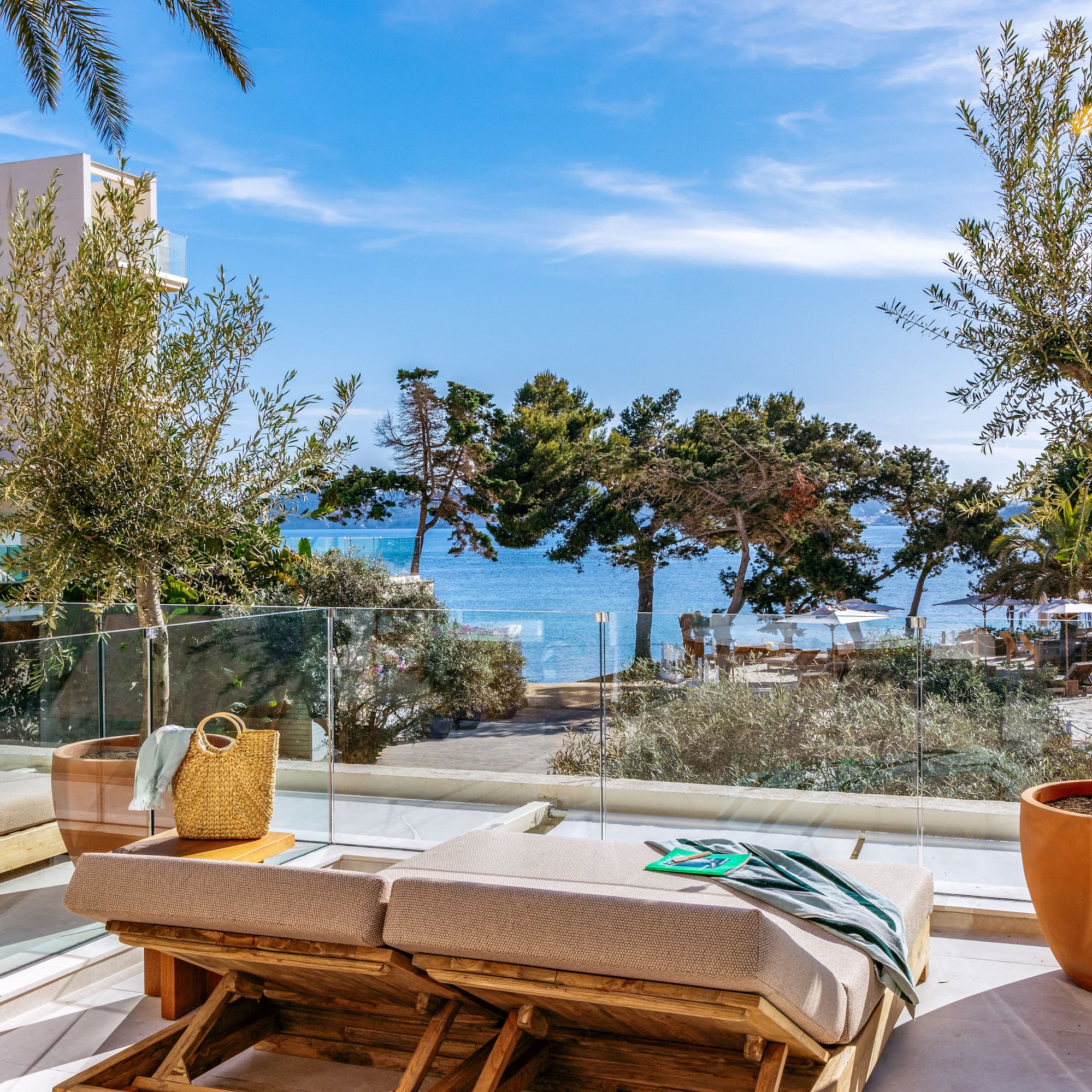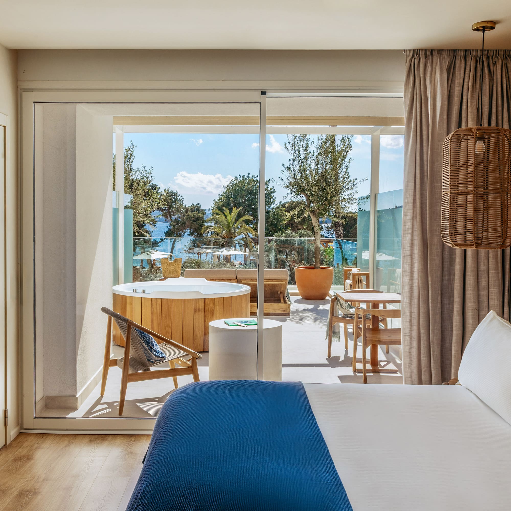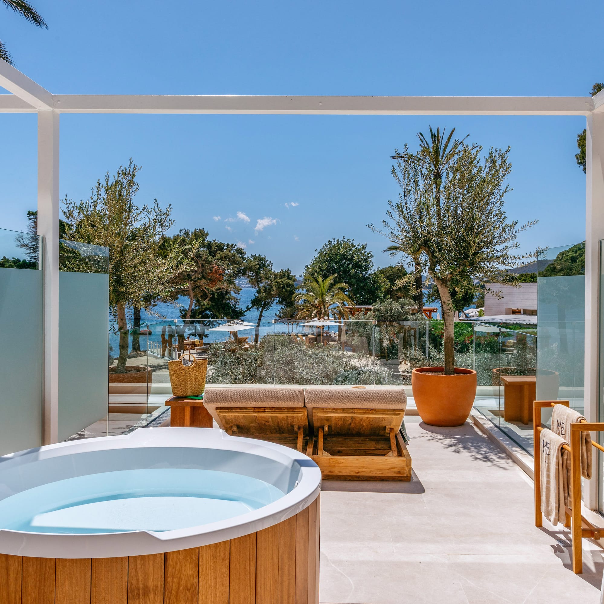A suite where sophistication merges with modernity. Mesmerized by the sea views from your private terrace and relaxed in comfort with all the details. The perfect balance for your stay in Ibiza.