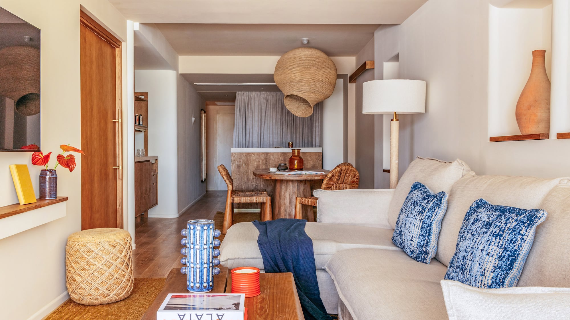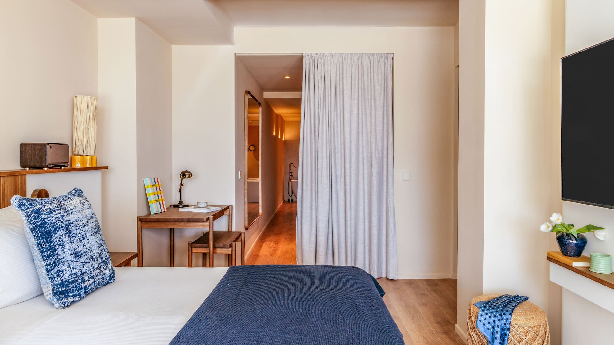 Come and discover a space with a Mediterranean character, where every corner of the room is adapted to your needs. A suite that redefines the way you rest with two separate bedrooms, two bathrooms with a bathtub and shower, and a lounge with a terrace. Without any doubt, this room provides all the privacy and exclusivity you were looking for on the Ibiza island.