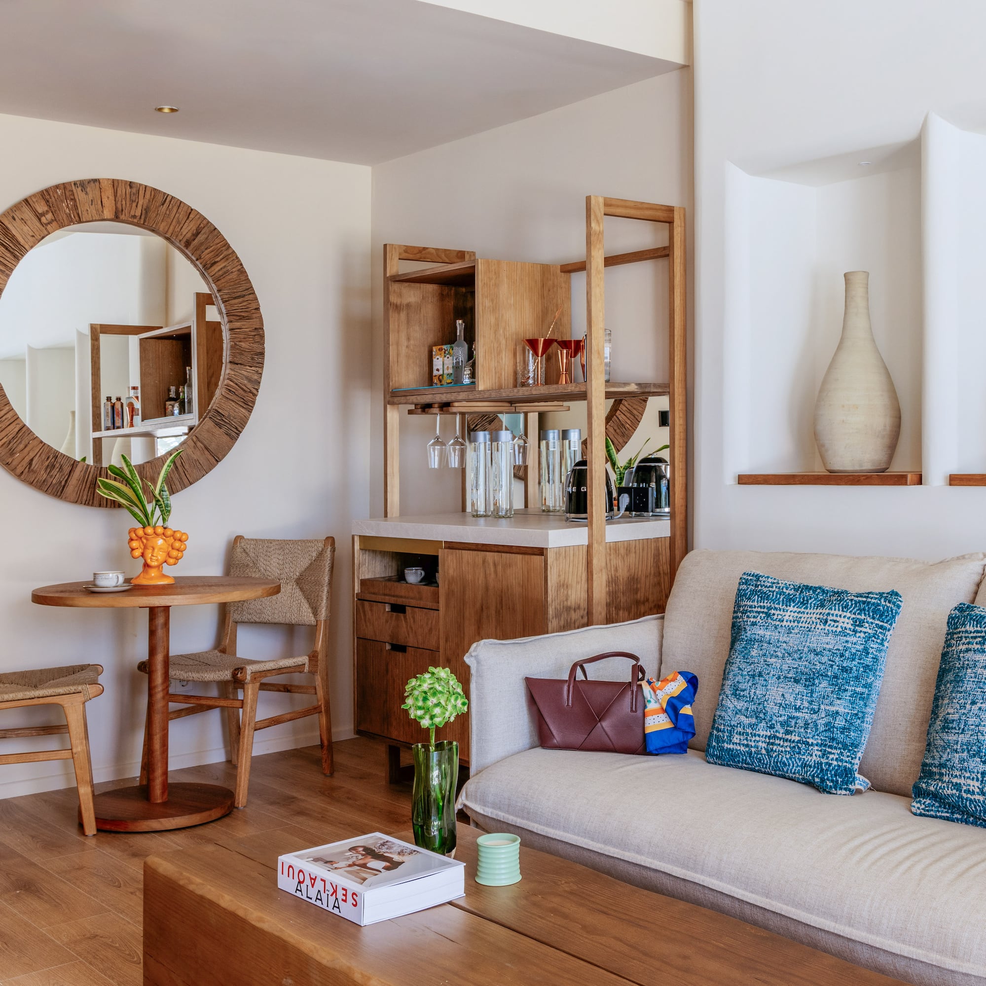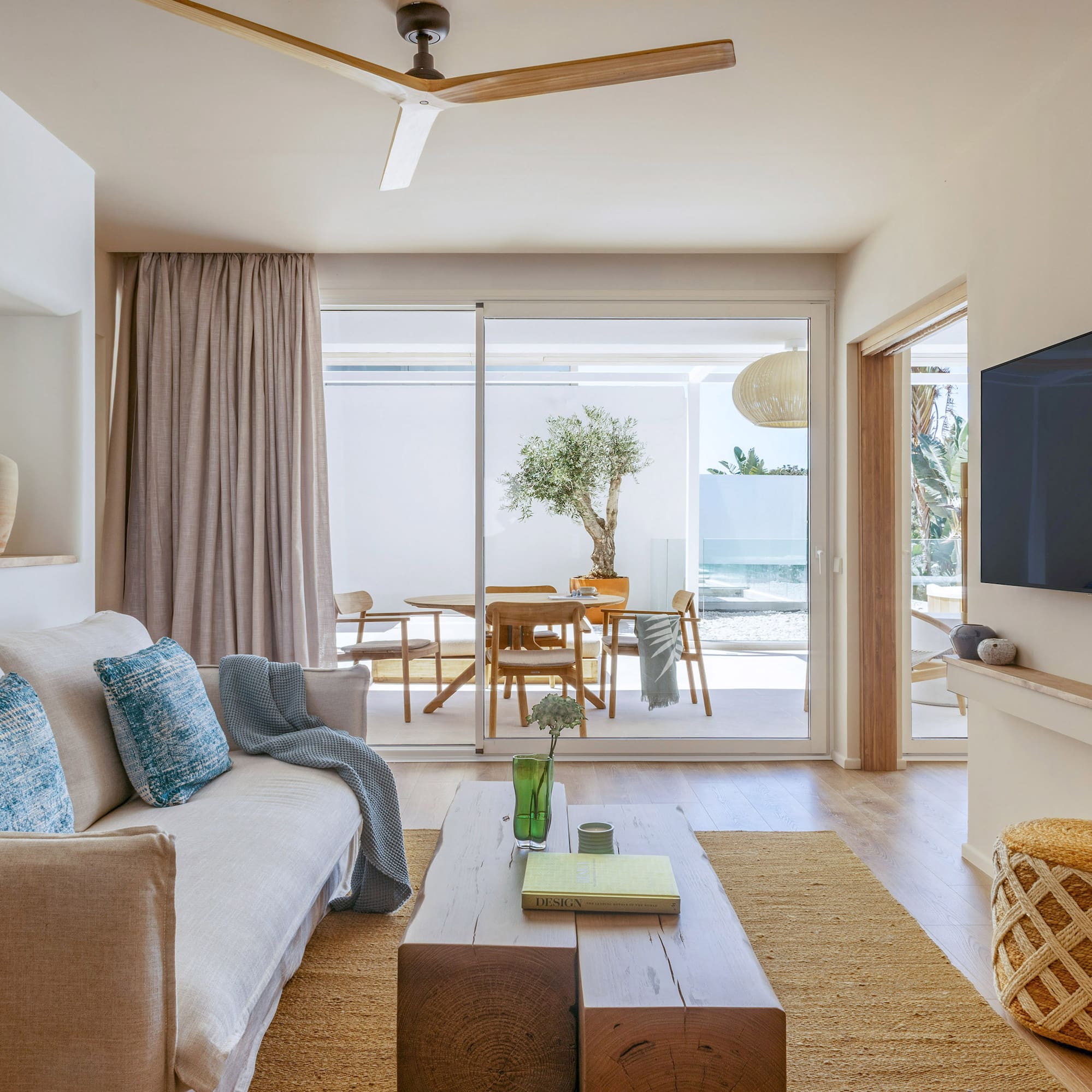 Located on the ground floor, this suite has a unique Mediterranean atmosphere which combines Ibizan style, character and culture with irresistible sea views and a private pool. The large terrace with a sofa and sunbeds tempts you out to enjoy the gentle sea breeze and aroma of the sea.