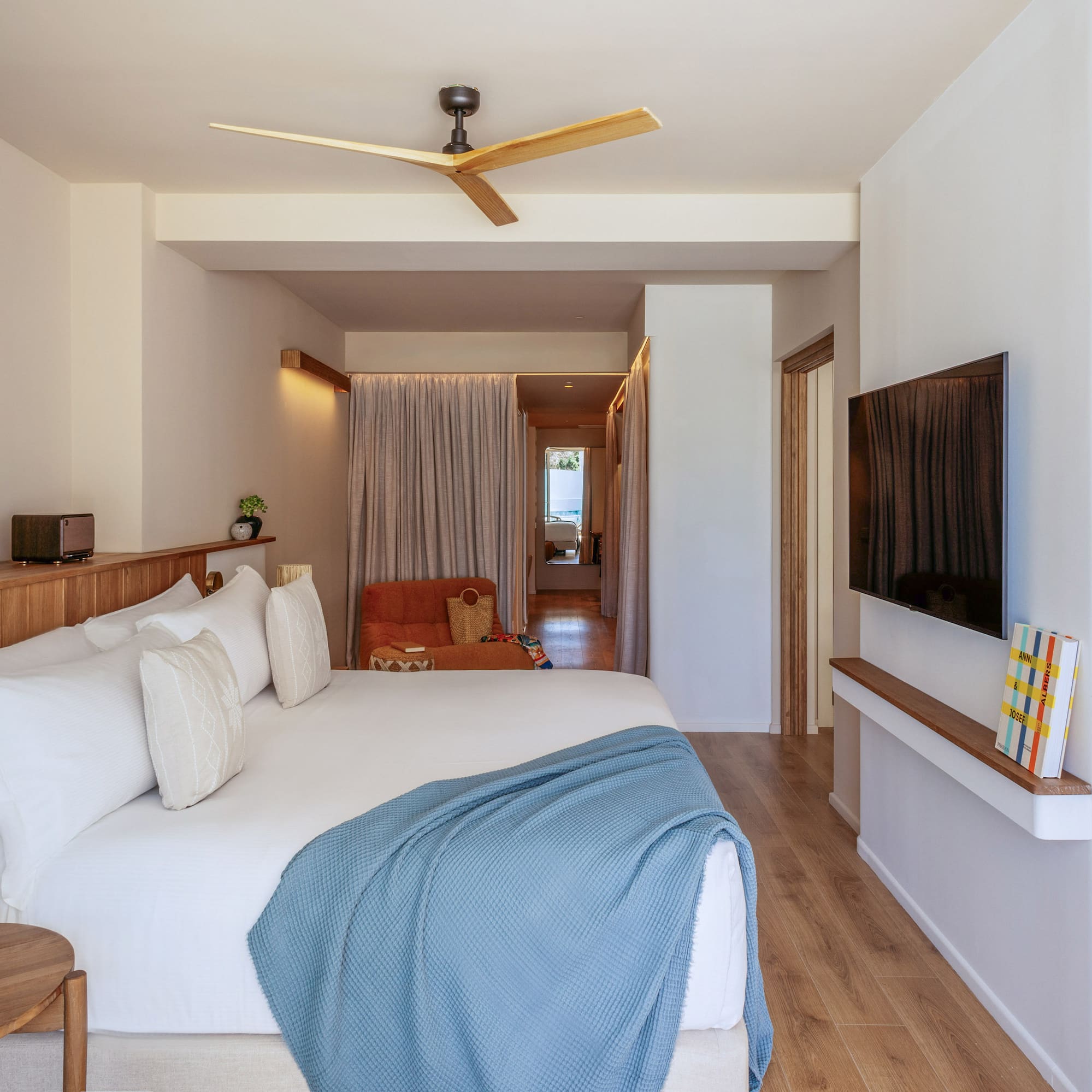Observe the Ibizan scenery and lifestyle from a room with stunning frontal views of the Mediterranean and the spectacular pool at the ME Ibiza. A fully soundproofed space with a king-size bed and a rainshower.