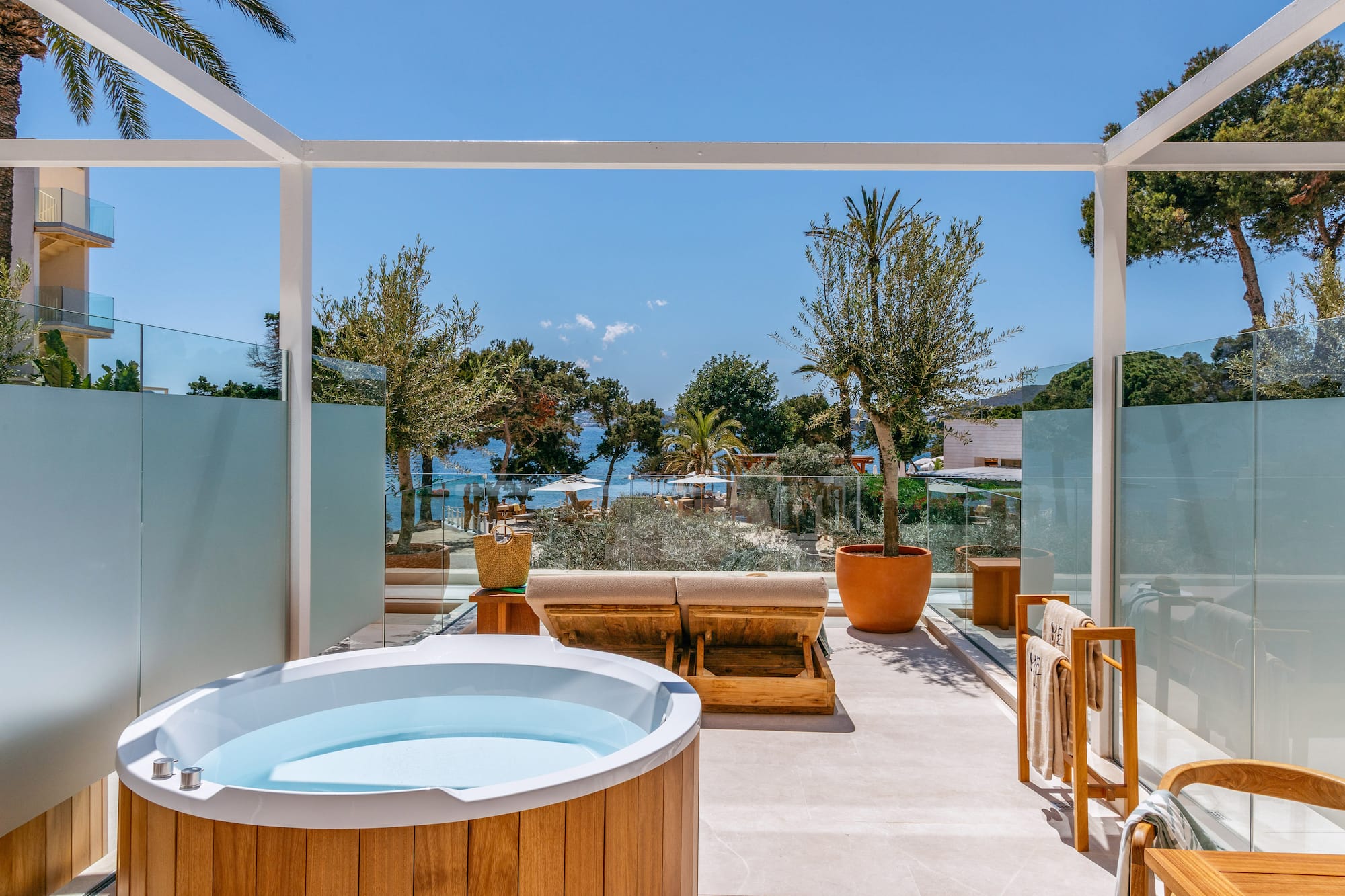 A suite where sophistication merges with modernity. Mesmerized by the sea views from your private terrace and relaxed in comfort with all the details. The perfect balance for your stay in Ibiza.